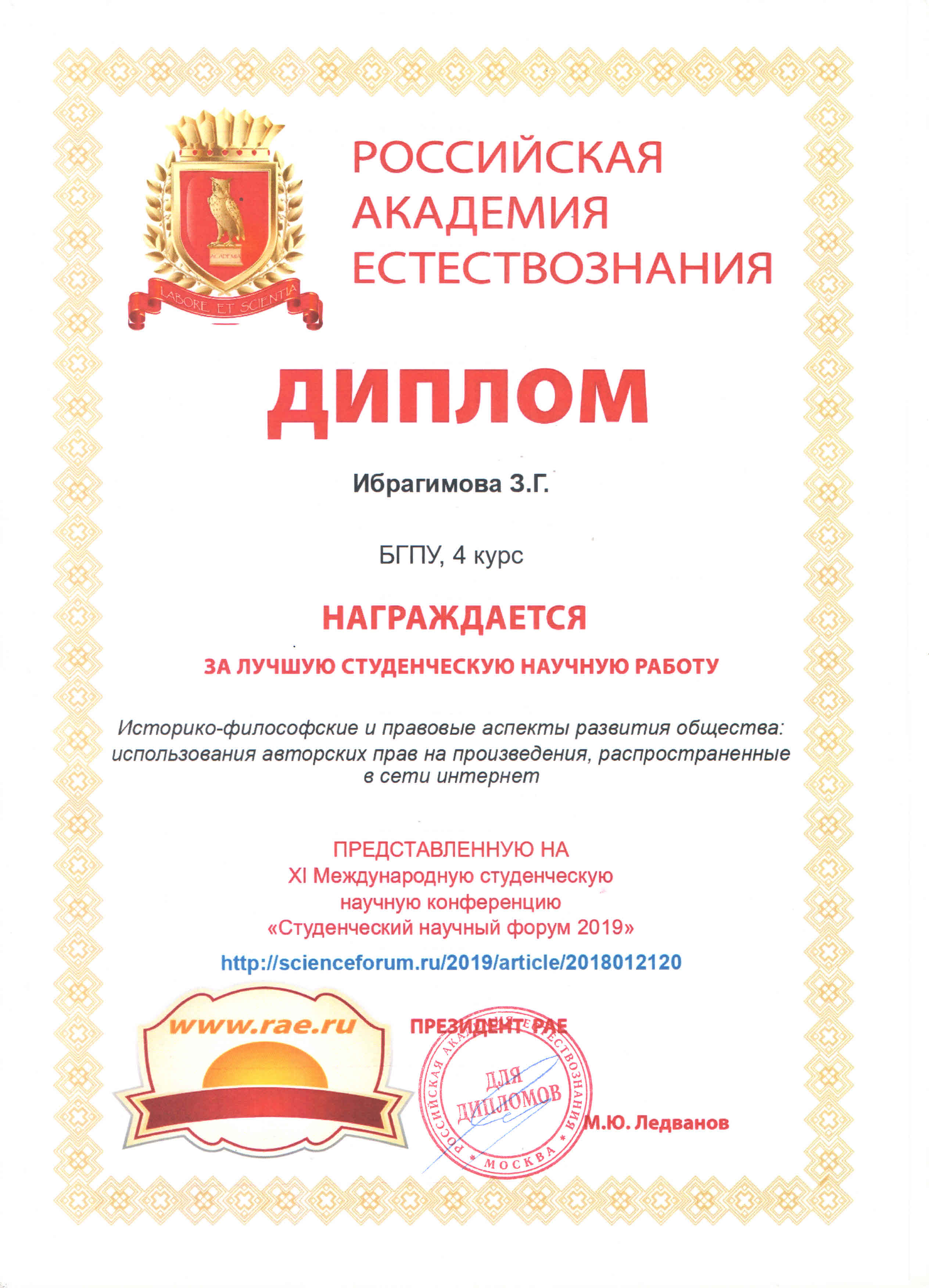 2. Ибрагимова З.Г., ИИПО «Историко-философские и правовые аспекты развития общества: использования авторских прав на произведения, распространенные в сети интернет».