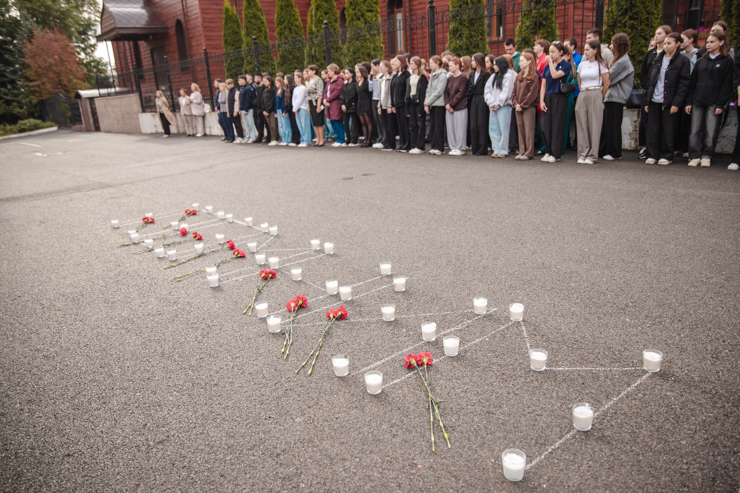 Участники акции зажгли свечи и почтили память всех жертв терроризма минутой молчания.
