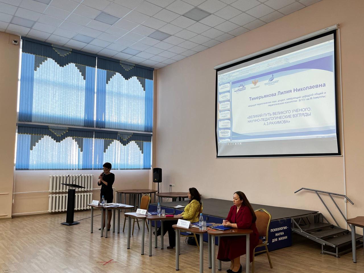 Научно-педагогические взгляды Ахмет Закиевича Рахимова в своем выступлении представила Лилия Тимерьянова, заведующая кафедрой общей и педагогической психологии БГПУ им. М. Акмуллы, Отличник образования Республики Башкорстан.