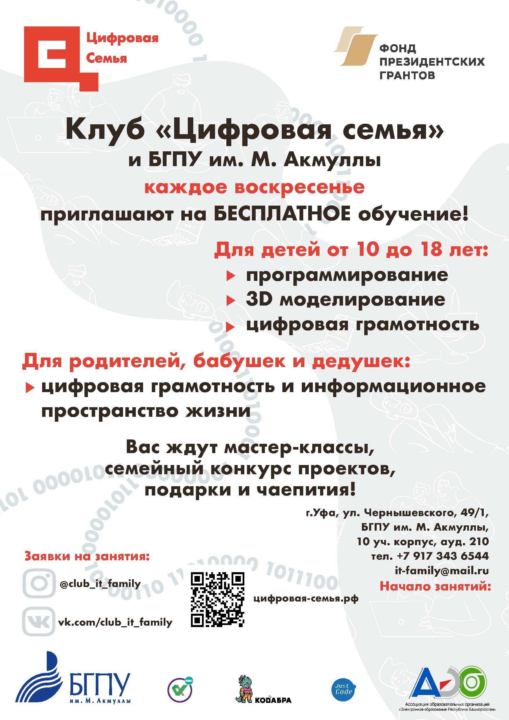 Акмуллинский университет и Фонд Президентских грантов представляют Клуб выходного дня «Цифровая семья»
