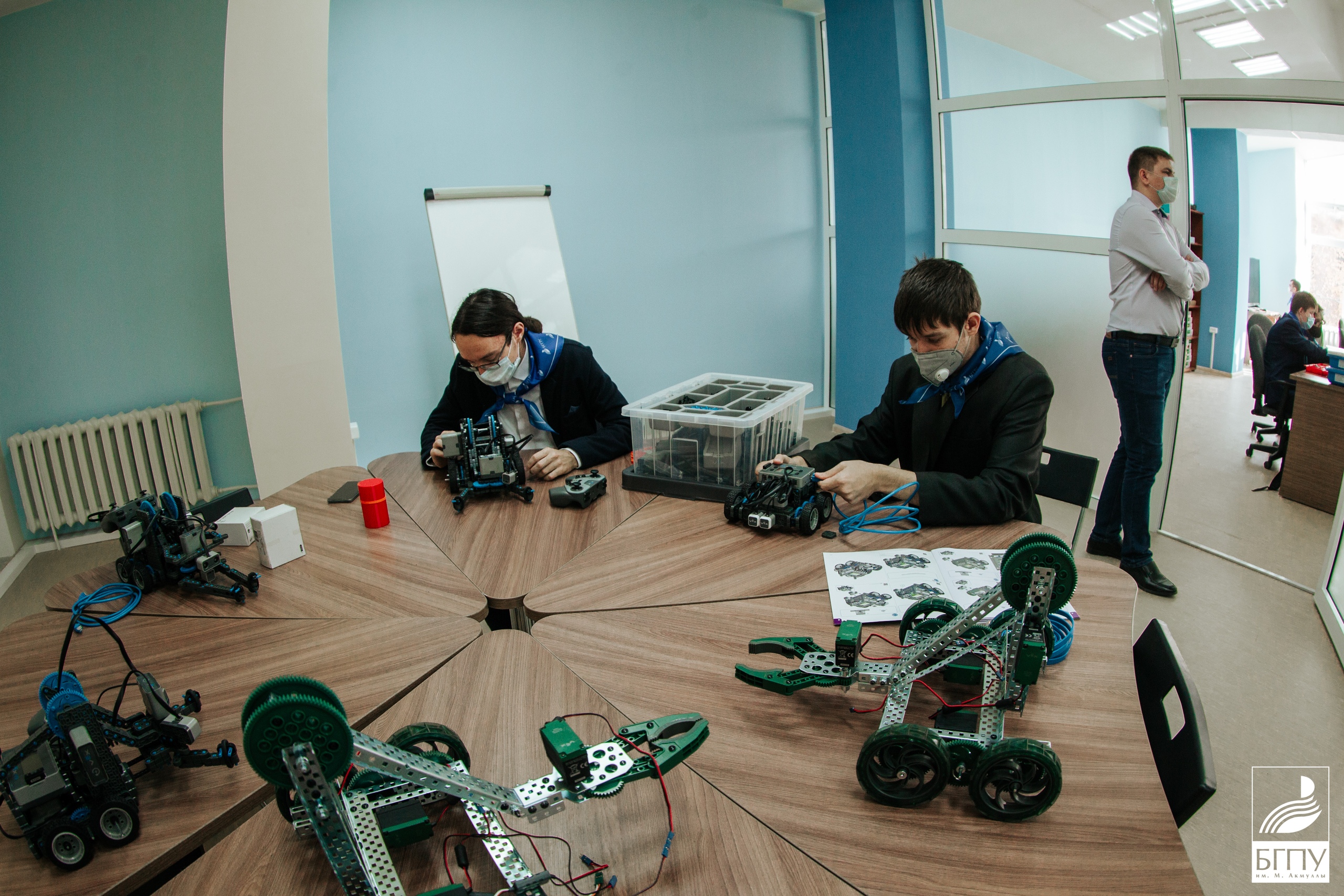 В рамках мероприятия участники круглого стола в первой половине дня 15 октября ознакомились с деятельностью Акмуллинского университета в том числе посетили Институт физики, математики, цифровых и нанотехнологий. Работу новой площадки Центра Роста Цифровых компетенций представила профессор кафедры прикладной информатики, д.т.н. А.С. Филиппова и студенты первого и третьего курса направления подготовки 09.03.03 Прикладная информатика: Полянская Ксения, Мамалимов Тимур, Сидоров Евгений, Муксинов Владислав, Закиров Денис, Мартынов Дмитрий, Батталова Илюза, Гришин Антон. Ребята показали площадки по направлению робототехника, виртуальная реальность, 3D моделирование.