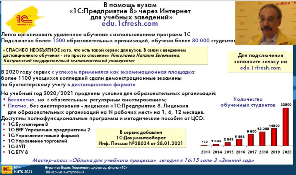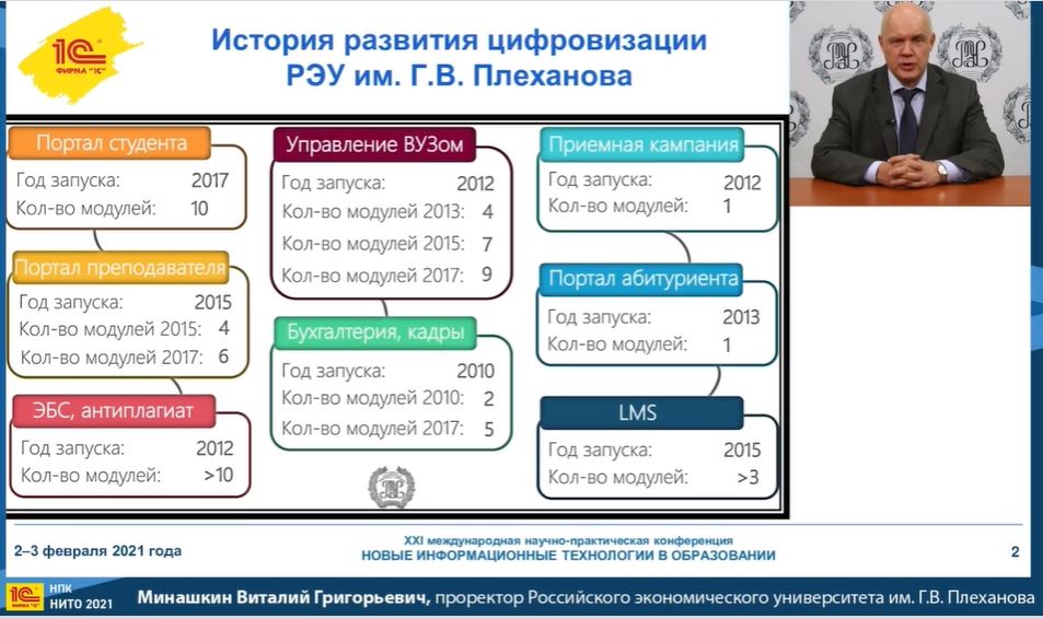 2-3 февраля в режиме онлайн прошла XXI Международная научно-практическая конференция НОВЫЕ ИНФОРМАЦИОННЫЕ ТЕХНОЛОГИИ В ОБРАЗОВАНИИ (НИТО 2021), объединившая более 7000 участников из 714 городов и 20 стран. Программа конференции была очень насыщенной, разнообразной, познавательной, включала работу нескольких параллельных секций, проходивших в разных виртуальных залах. На конференции было представлено более 200 докладов, 27 мастер-классов, 7 круглых столов, 1 дискуссионная площадка, онлайн-вернисаж по 40 продуктам и направлениям работы с образовательными организациями. Посетить все было, конечно же, не возможно. У режима онлайн есть одно большое преимущество - материалы конференции будут открыты для участников в течение месяца.