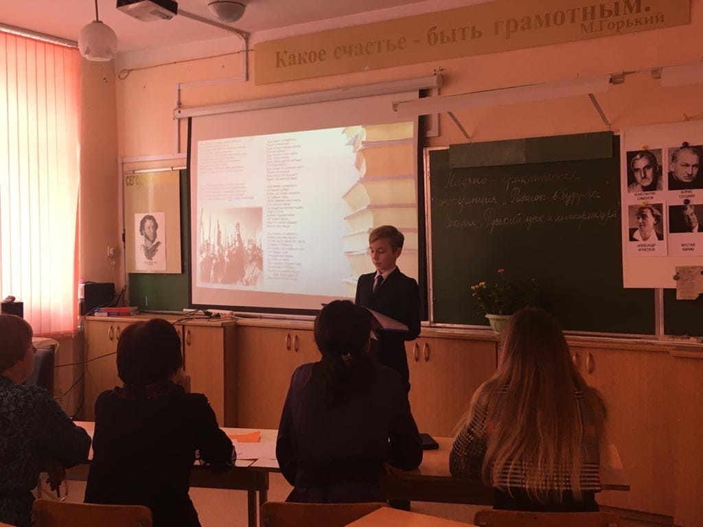 14 марта в рамках изучения дисциплин «Теория и методика обучения русскому языку» и «Теория и методика обучения русской литературе» студенты 4 курса направления подготовки 44.03.05 Педагогическое образование, направленности (профиля) "Русский язык и литература" под руководством преподавателей кафедр русского языка к.ф.н., доц. О.В. Тугузбаевой и русской литературы  д.п.н., проф. А.М. Шуралёва приняли активное участие в организации и проведении научно-практической конференции "Росток в будущее" для учащихся 1-11 классов в МБОУ СОШ № 41 г. Уфа. Студенты приняли участие в работе 7 секций в качестве ведущих, членов жюри, провели викторины, конкурсы, квесты по русскому языку и литературе. Также в рамках программы дня науки и культуры профессор кафедры русской литературы, член Союза писателей России и Башкортостана А.М. Шуралёв по просьбе администрации школы провёл творческую встречу с учениками 9-11 классов, во время которой исполнил свои стихи и песни о родителях, детстве, отчем доме, Великой Отечественной войне, поэтах, поэзии, любви и пригласил выпускников поступать в БГПУ им. М. Акмуллы.
