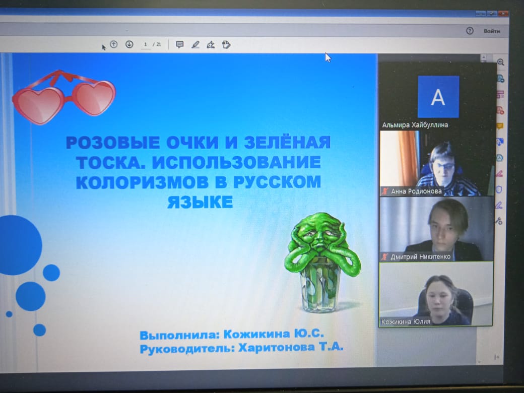 В рамках  XXVI научно-практической онлайн-конференции школьников г. Уфы «Познание и творчество» (секция «Русский язык») 27 января 2022 г.  прошел очный тур муниципального этапа конкурса исследовательских работ «Познание и творчество» Малой академии наук школьников 2021-22 учебного года.