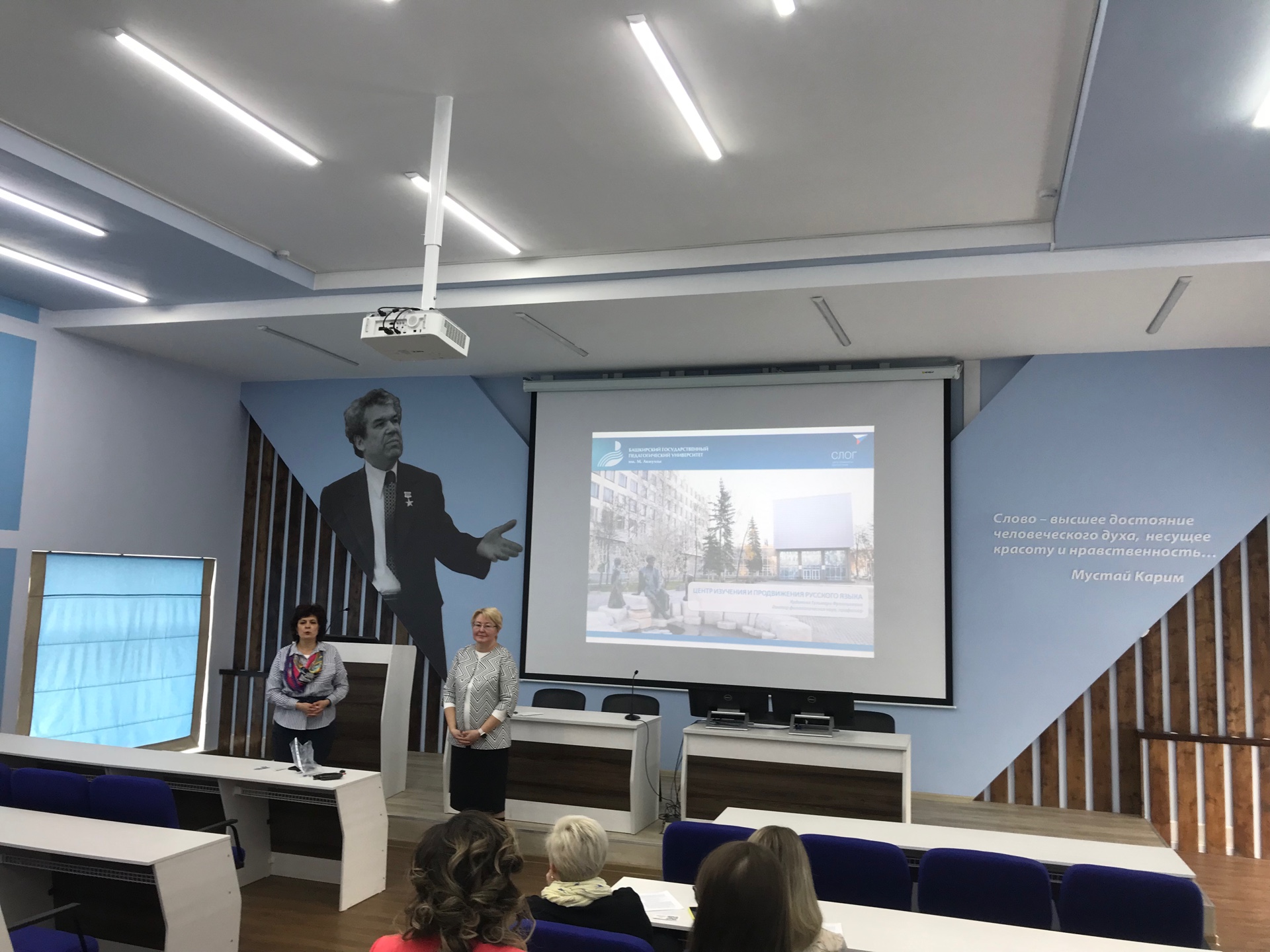 Прошла встреча с участниками регионального этапа конкурса Учитель года (русский язык и литература). Зав. кафедрой русского языка, теоретической и прикладной лингвистики Гульнара Франгилевна Кудинова представила проекты нашей кафедры, программы бакалавриата ПО_РЯЛ, Русский язык как иностранный, магистратуры Бизнес-коммуникация, все проекты Центра продвижения русского языка СЛОГ.
