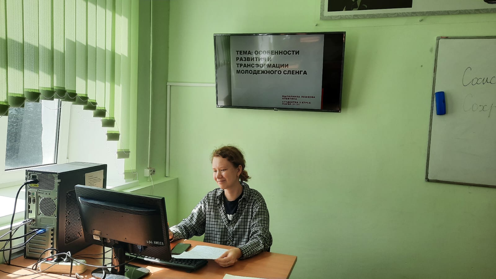 Лешкова А. В. сообщила о ходе работы над темой «Особенности развития и трансформации молодежного сленга» (науч. руководитель – к.ф.н., доцент Косов А. Г.). Особое внимание было уделено вопросам культуры речи и нормам современного русского литературного языка, в частности такого явления как молодежный сленг. Особое внимание было уделено вопросам влияния социальных сетей и интернет-общения на формирование молодёжного сленга.
