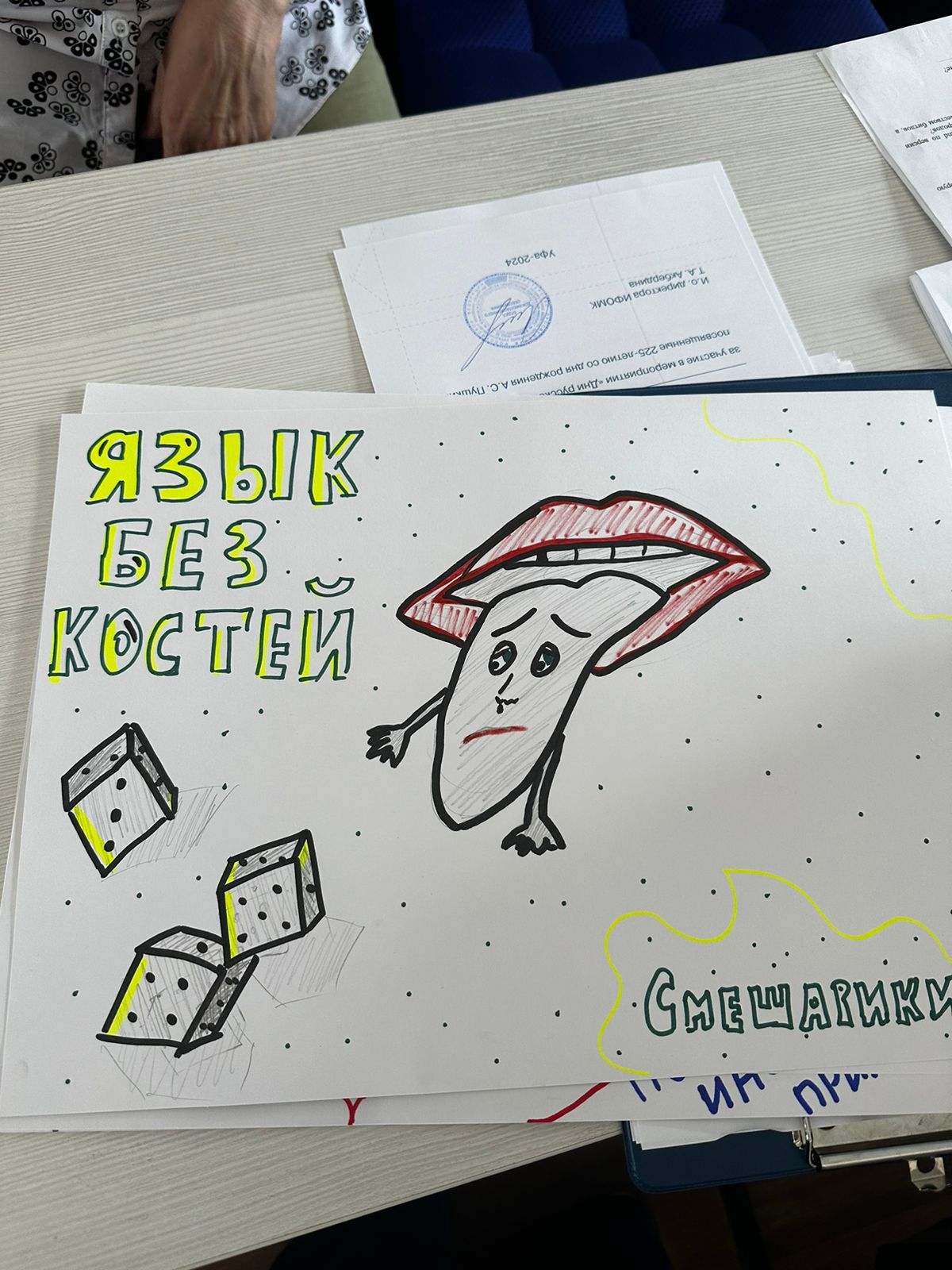 Участникам конкурса «Мемология» нужно было выполнить несколько заданий. Конкурсанты разгадывали мемы, исправляли их в соответствии с нормами русского языка, и даже нарисовали свой мем на основе русских фразеологизмов.