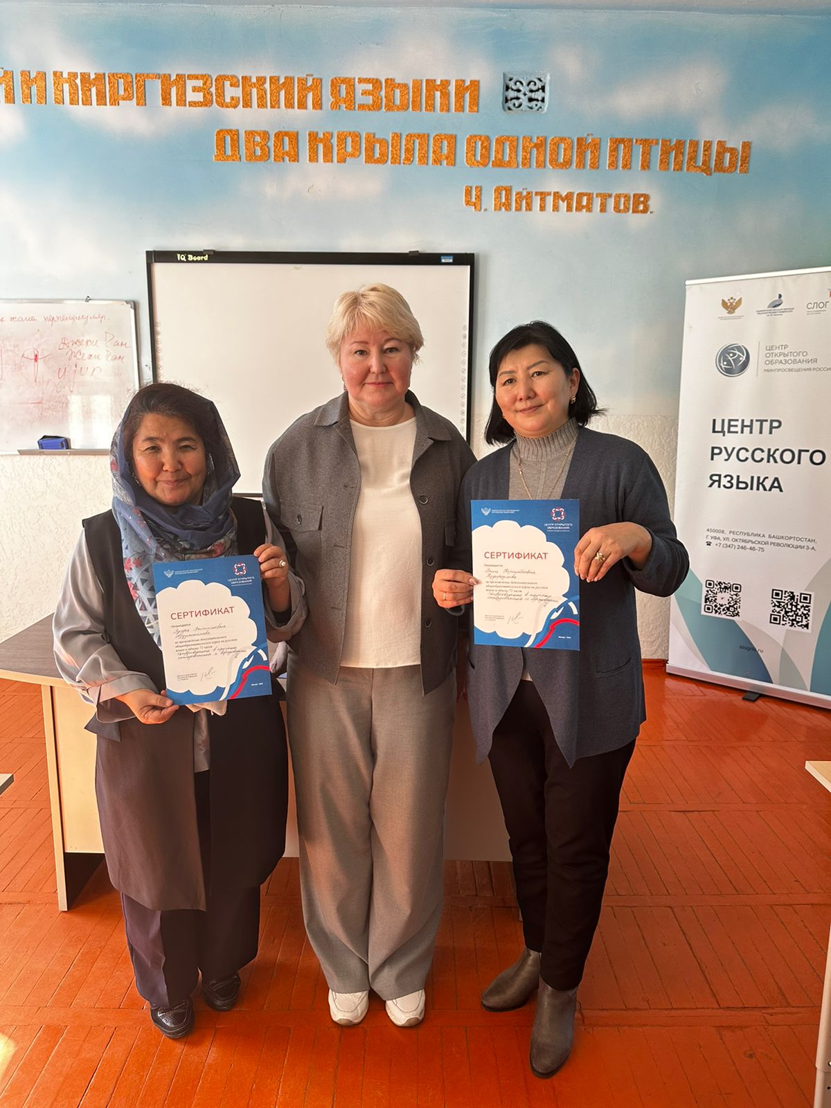 В Центре открытого образования на русском языке и обучения русскому языку при Иссык-Кульском государственном университете имени Касыма Тыныстанова состоялась встреча с преподавателями русского языка. Гульнара Кудинова, доктор филологических наук, профессор, зав. кафедрой русского языка, теоретической и прикладной лингвистики ФГБОУ ВО «Башкирский государственный педагогический университет им. Акмуллы» и Юлия Фомина, доцент этой кафедры, кандидат филологических наук обсудили с коллегами из Киргизской республики вопросы цифровизации в научных исследованиях и в образовательных процессах.