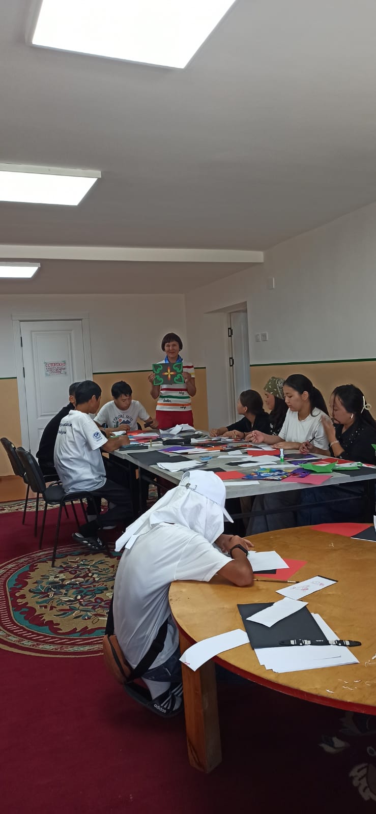 В рамках реализации программы "Диалоги о России" к.п.н., доцент ИП Екатерина Савельева проводит с киргизскими школьниками интересные мероприятия на русском языке. На занятиях Екатерина Александровна через игру военно-историческое лото "Предметы личного пользования солдат и офицеров времён ВОВ 1941-1945 гг." познакомила ребят с  героическими страницами Великой Отечественной войны. Под её руководством ребята научились складывать фронтовые письма-треугольники и создали плакат, посвященный 80-летию Победы в ВОВ. Участники смены посетили нарынскую Артгалерею и познакомились с творчеством знаменитого нарынского художника Нурбека Жолбунова. На живописных картинах, созданных по произведениям Чингиза Айтматова и посвященных Великой Отечественной войне, ребята с удивлением и восторгом обнаружили изображения фронтовых писем-треугольников, с которыми они познакомились и научились складывать на занятии.