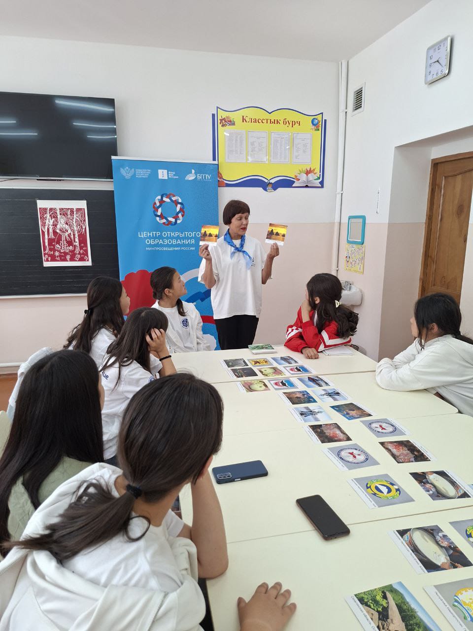 Доцент кафедры теорий и методик начального образования Екатерина Савельева по программе «Диалоги о России» знакомила ребят с Россией через  игру- лото "Путешествие по городам и селам России". Они  узнали об интересных и уникальных достопримечательностях страны. Понравившиеся объекты старшеклассники изобразили на своих картинах. Среди них есть знаковые места столицы Башкортостана Уфы: фонтан «Семь девушек», «Монумент Дружбы», мечети и др. На одном из этих мероприятий приняла активное участие заместитель руководителя Департамента международного сотрудничества фонда «Моя история» Елена Гуляева.