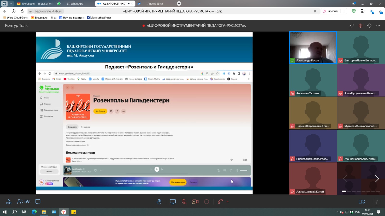 Завершился этап тьюторской поддержки в рамках научно-практического семинара «Цифровой инструментарий педагога-русиста» для преподавателей, работающих за пределами России,  организованного Башкирским государственным педагогическим университетом им. М. Акмуллы по заказу Международной ассоциации преподавателей русского языка и литературы.