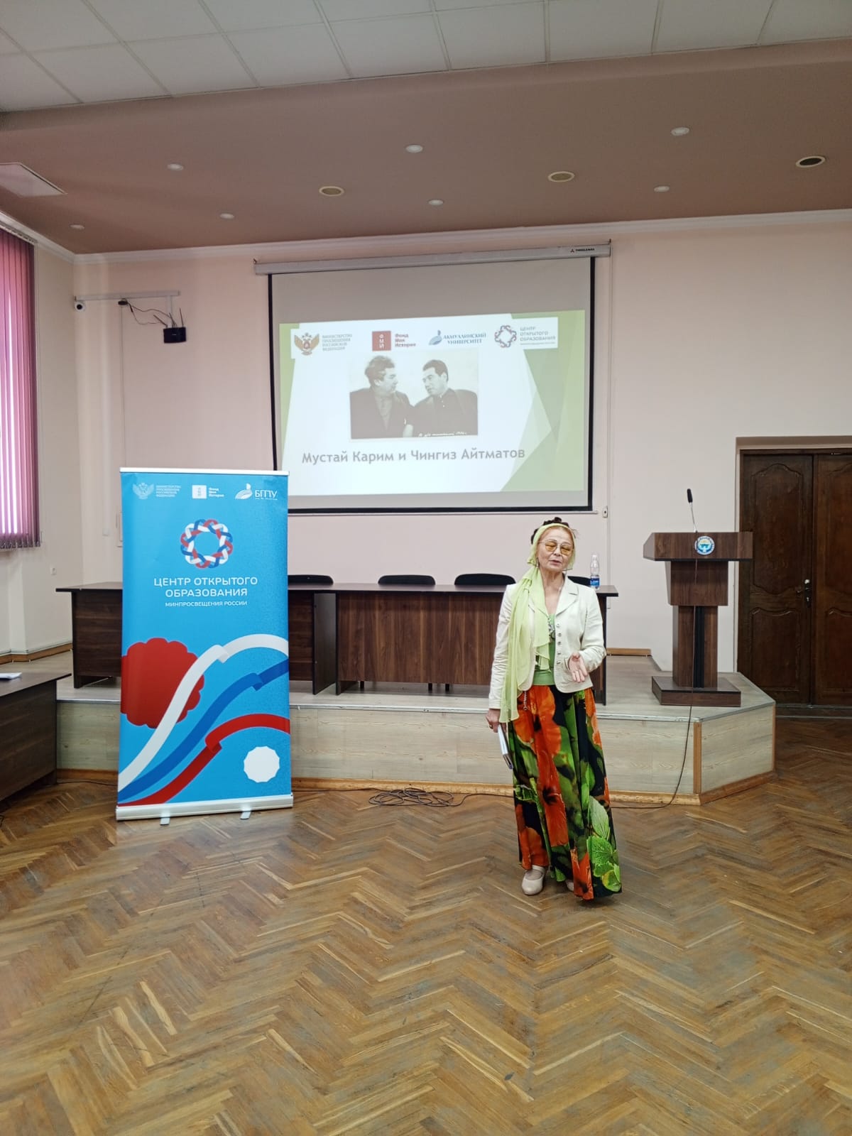 Первокурсники педагогического факультета и третьекурсники физкультурного с интересом слушали лекцию доцента Айтугана Куланчина о творческих связях народного поэта Башкортостана Мустая Карима и народного писателя Кыргызстана Чингиза Айматова, а также историю медресе Галия как кузницы народных педагогов и поэтов тюркских народов.