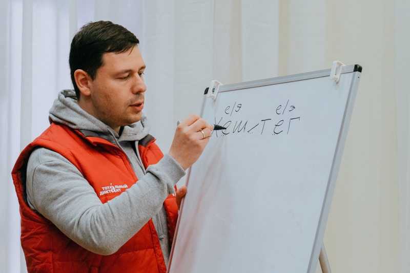 Студенты спрашивали о подвижном ударением в русском языке, интересовались, как  грамотно употреблять феминитивы в языках народов России. Одна из участниц встречи – Вера Кустова – написала стихотворение для участников автопробега и тем самым вошла в историю «Тотального путешествия», по итогам которого будет написана книга о городах-участниках «Тотального диктанта».