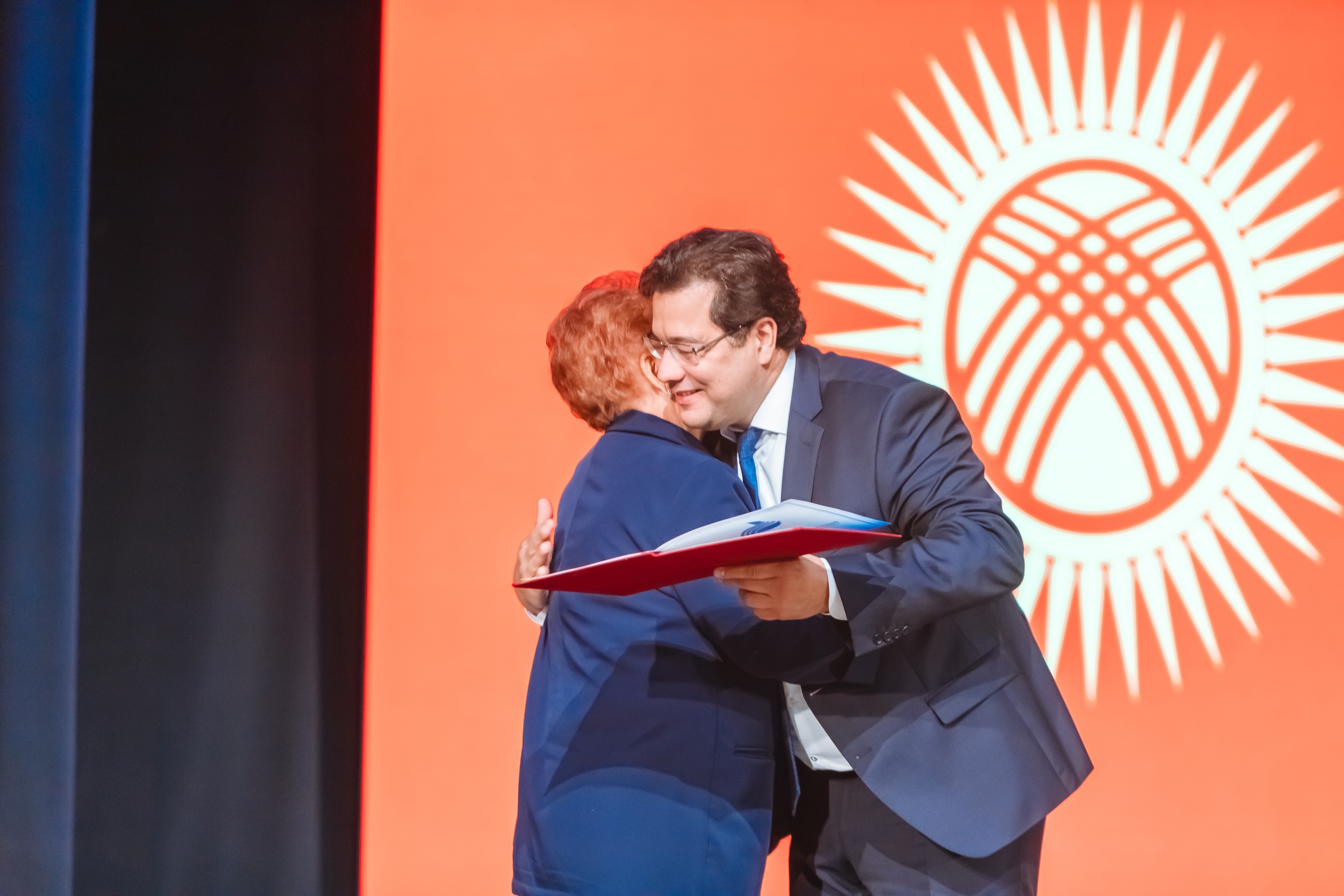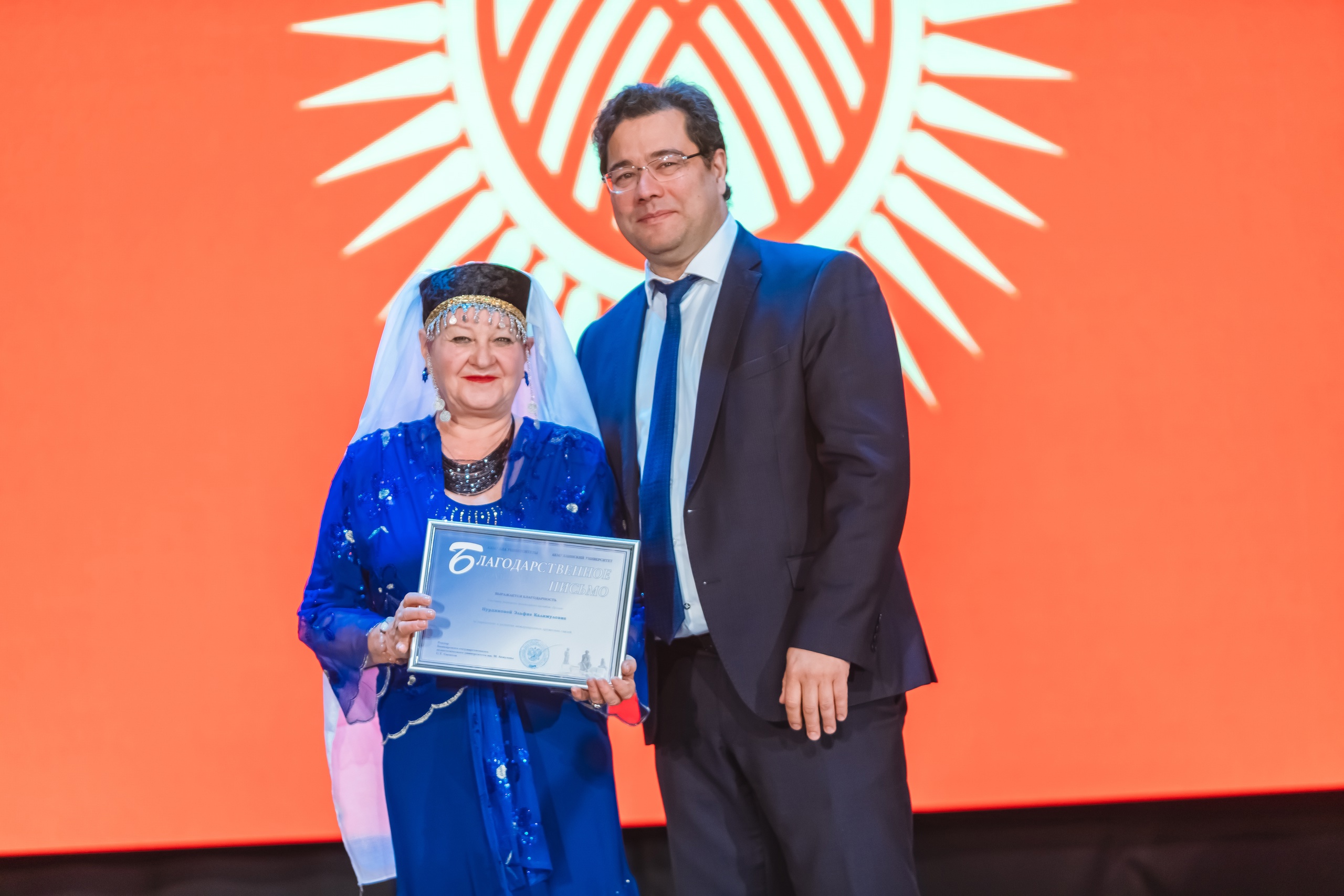За многолетнюю и плодотворную работу по сохранению и продвижению языков и культурных традиций народов России, а также укрепление дружеских связей между странами-партнерами Салават Сагитов вручил Гульсине Ульмаскуловой почетную грамоту. Также участники народного фольклорного ансамбля «Дуслык» получили из рук ректора благодарственные письма.