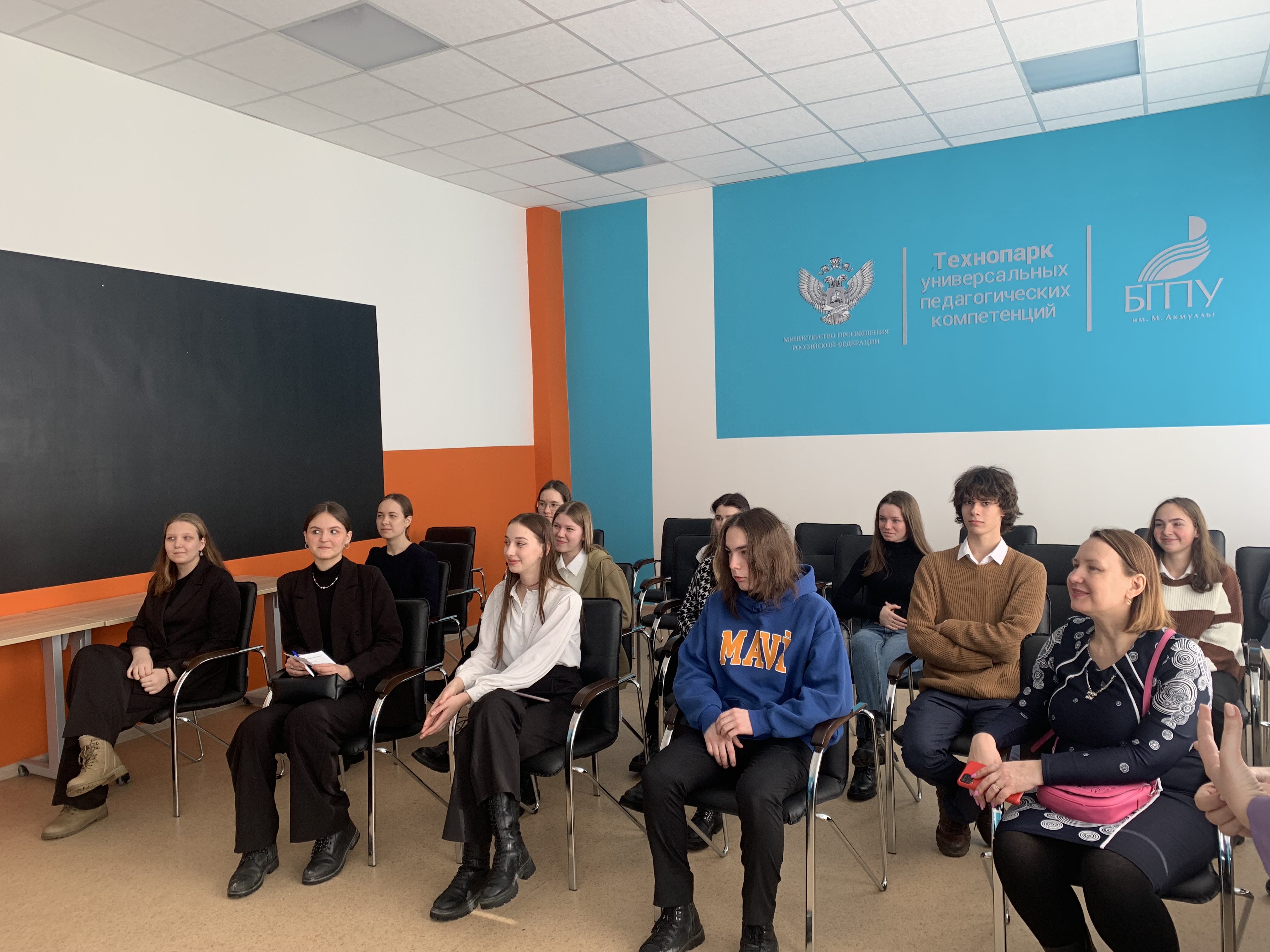 14 февраля 2023 г. в Технопарке универсальных педагогических компетенций БГПУ им. М. Акмуллы стартовал профориентационный маршрут «Профессиональная среда» для психолого-педагогических классов. Первыми его участниками стали обучающиеся психолого-педагогического класса Гимназии №86 г. Уфы.