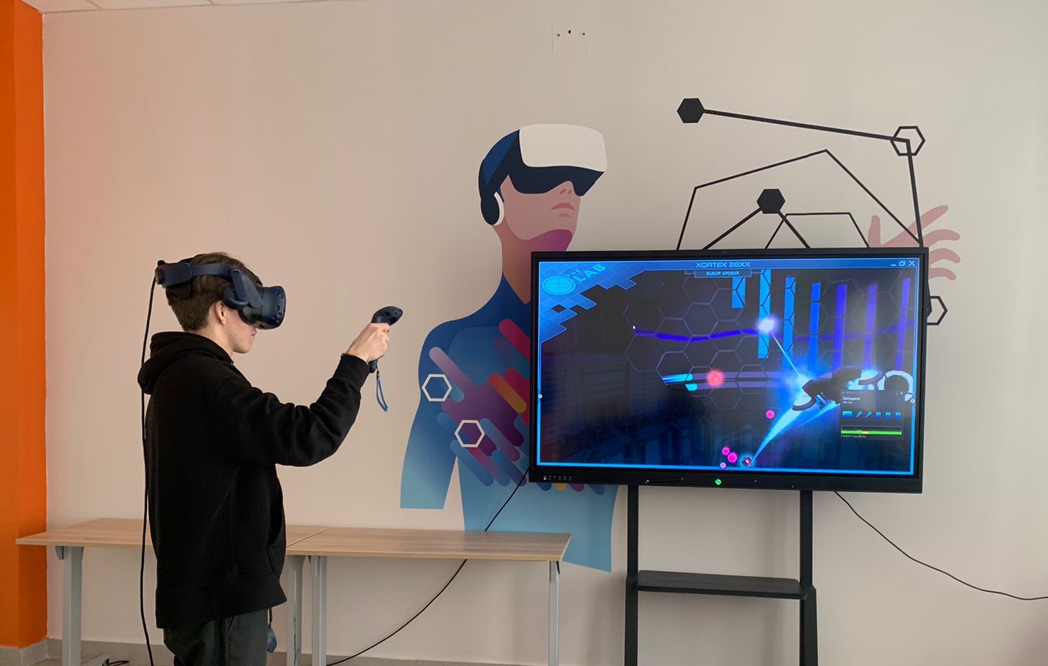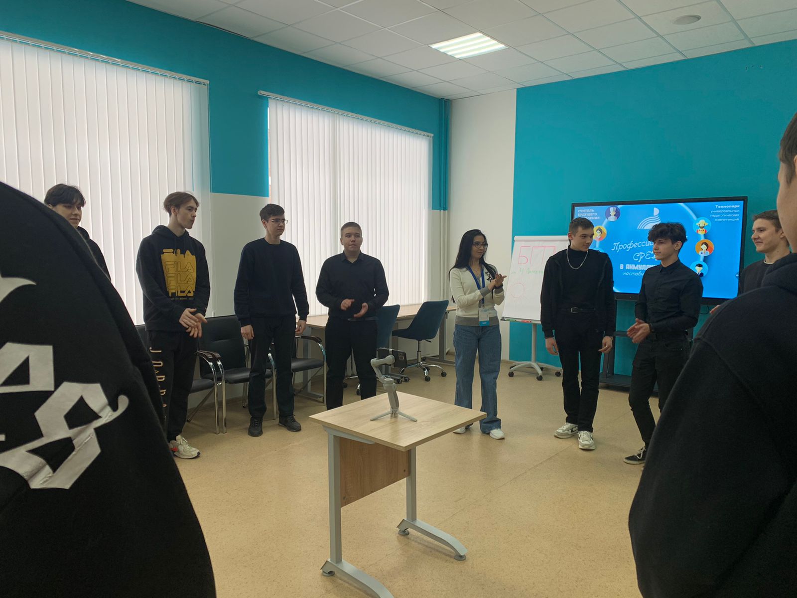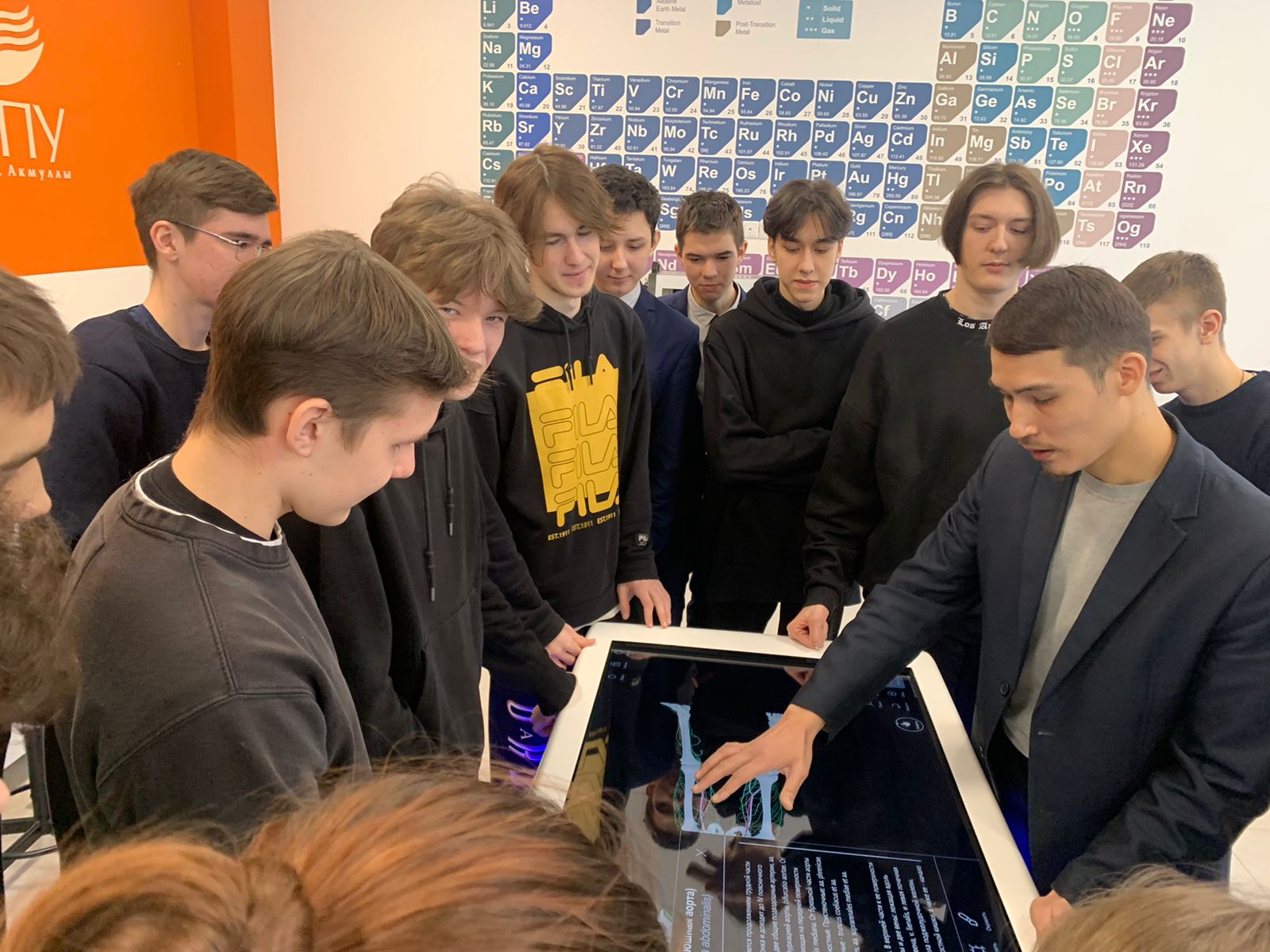 В VR/AR зоне ведущий специалист Технопарка универсальных компетенций  Ильяс Янзигитов познакомил ребят с оснащением лаборатории дополненной реальности, продемонстрировал образцы робототехники, а в естественнонаучной зоне показал оборудование для практических занятий по генетике, аналитической химии. Особый интерес у школьников вызвал интерактивный анатомический стол «Пирогов», который в 2D-формате познакомил ребят со строением организма человека.