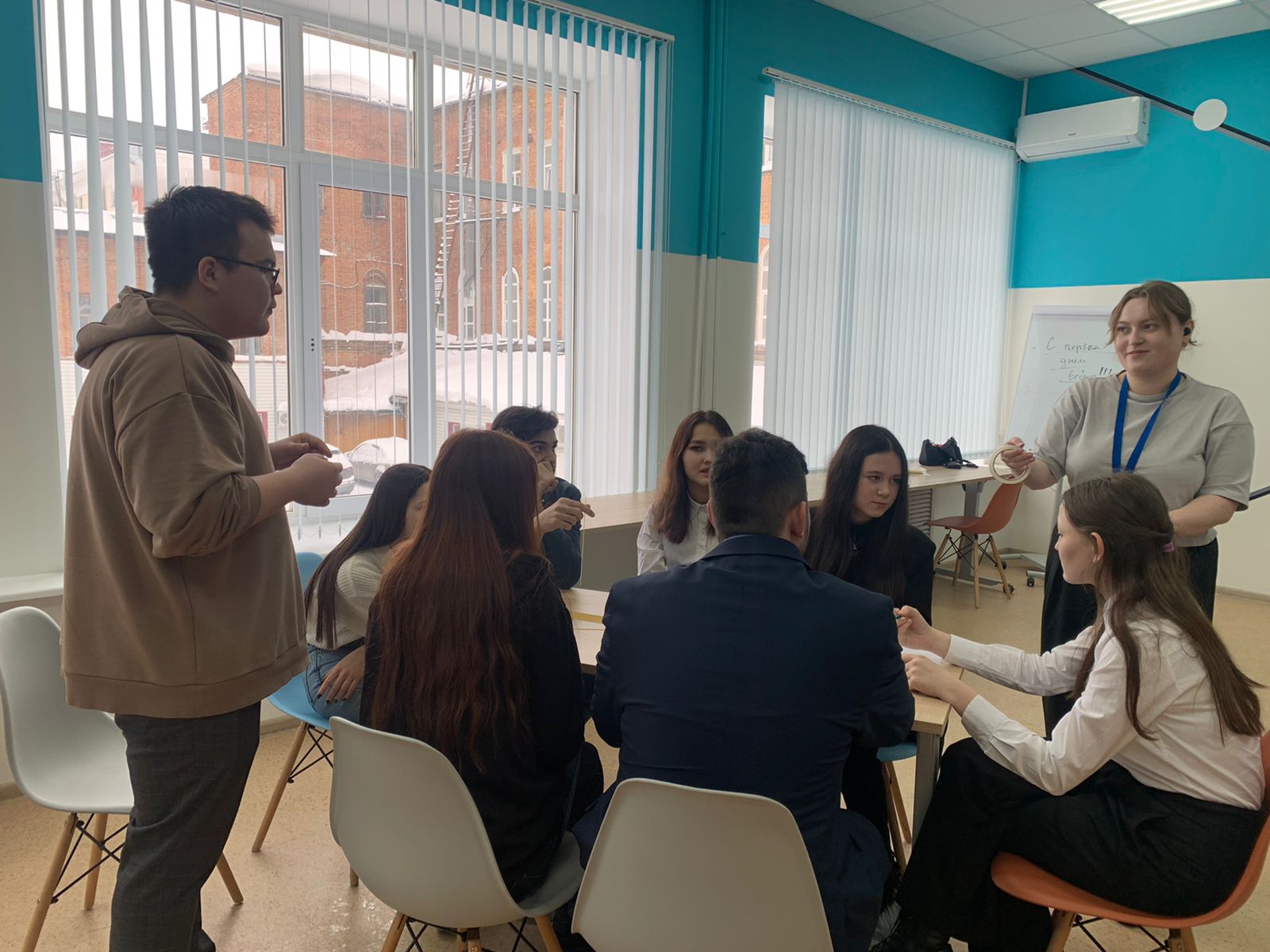 В зоне коворкинга и проекториума школьники встретились с профориентационным  десантом «Наставники первых» Акмуллинского университета. Елена Урванцева (3 курс, ИФМЦН), Алина Сабитова (2 курс, ИФОМК) и Иоланта Фазлыева (1 курс, ИФОМК)  провели мастер-класс по развитию навыков самопрезентации, которые позволят успешно проходить собеседования, занимать ключевые позиции и повышать свою личностную самооценку. Камилла Бакирова (1 курс, ИП),  и Анна Переверзева (1 курс, ХГФ)  провели деловую игру, в ходе которой ребята познакомились с основами проектной деятельности: примерили на себя роли участников проекта, попытались реализовать, а затем и презентовать проект.