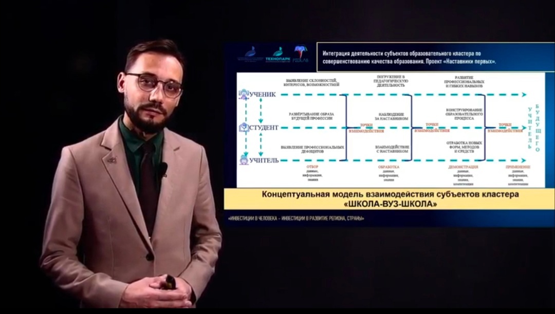 Сергей Сергеевич выступил с докладом о системе и проектах наставничества, развивающихся в Акмуллинском университете совместно с «Педагогической лабораторией», а также раскрыл концептуальную модель работы технопарка Башкирского педуниверситета в системе «школа-вуз-школа».