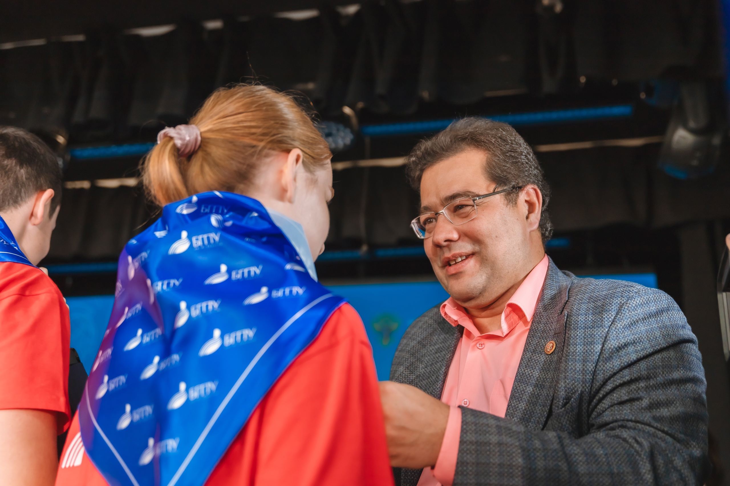 Принимая юных гостей в дружную университетскую семью, почетные гости по традиции школьникам из ЛНР повязали галстуки с символикой БГПУ им. М. Акмуллы.