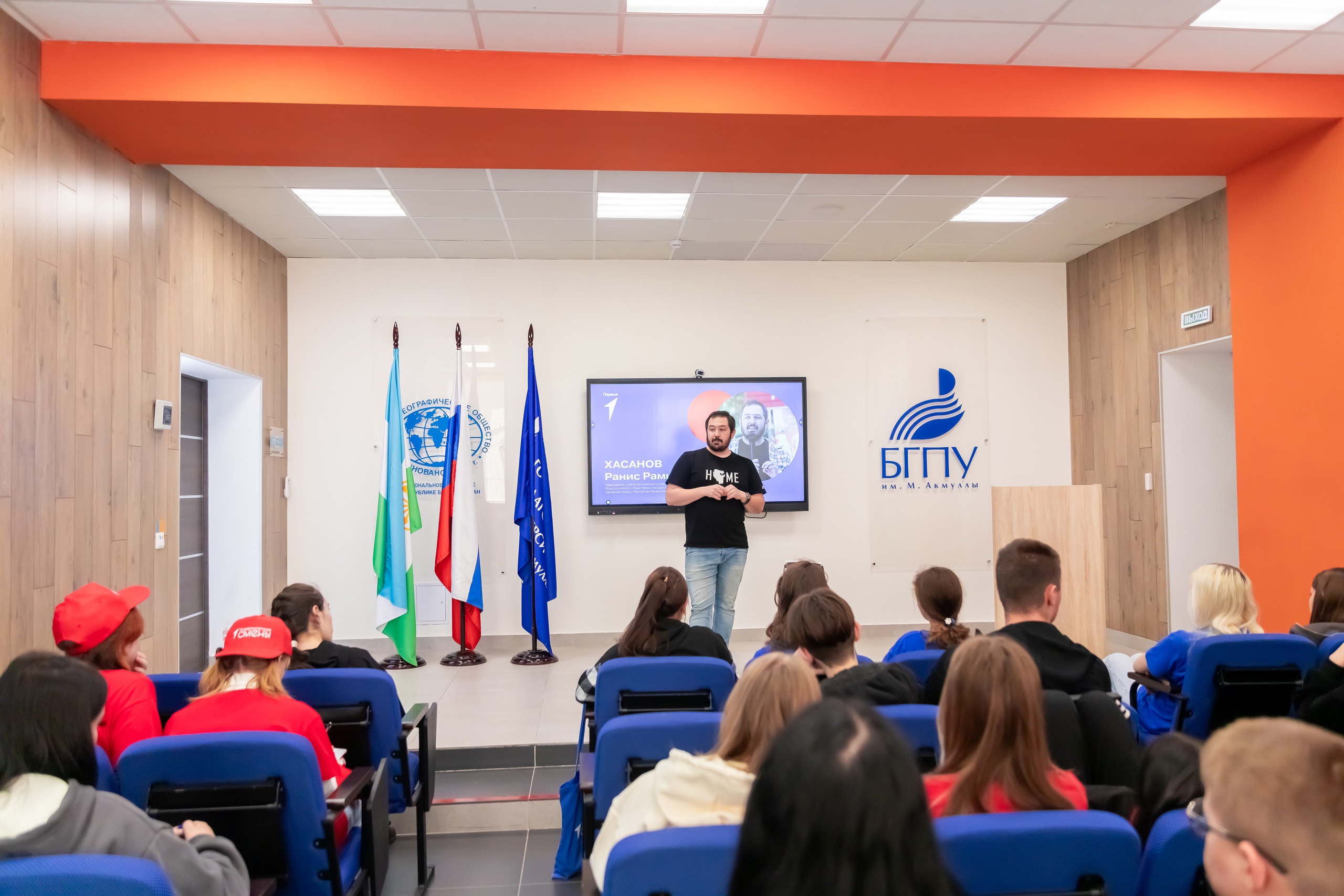 Четвертый день «Университетской смены» в БГПУ имени Акмуллы стал Днём Первых. По традиции этот день начался с гимнов России и Башкортостана. На торжественной линейке участников смены приветствовал Председатель совета регионального отделения «Движения Первых», советник Главы республики Башкортостан Ранис Хасанов.
