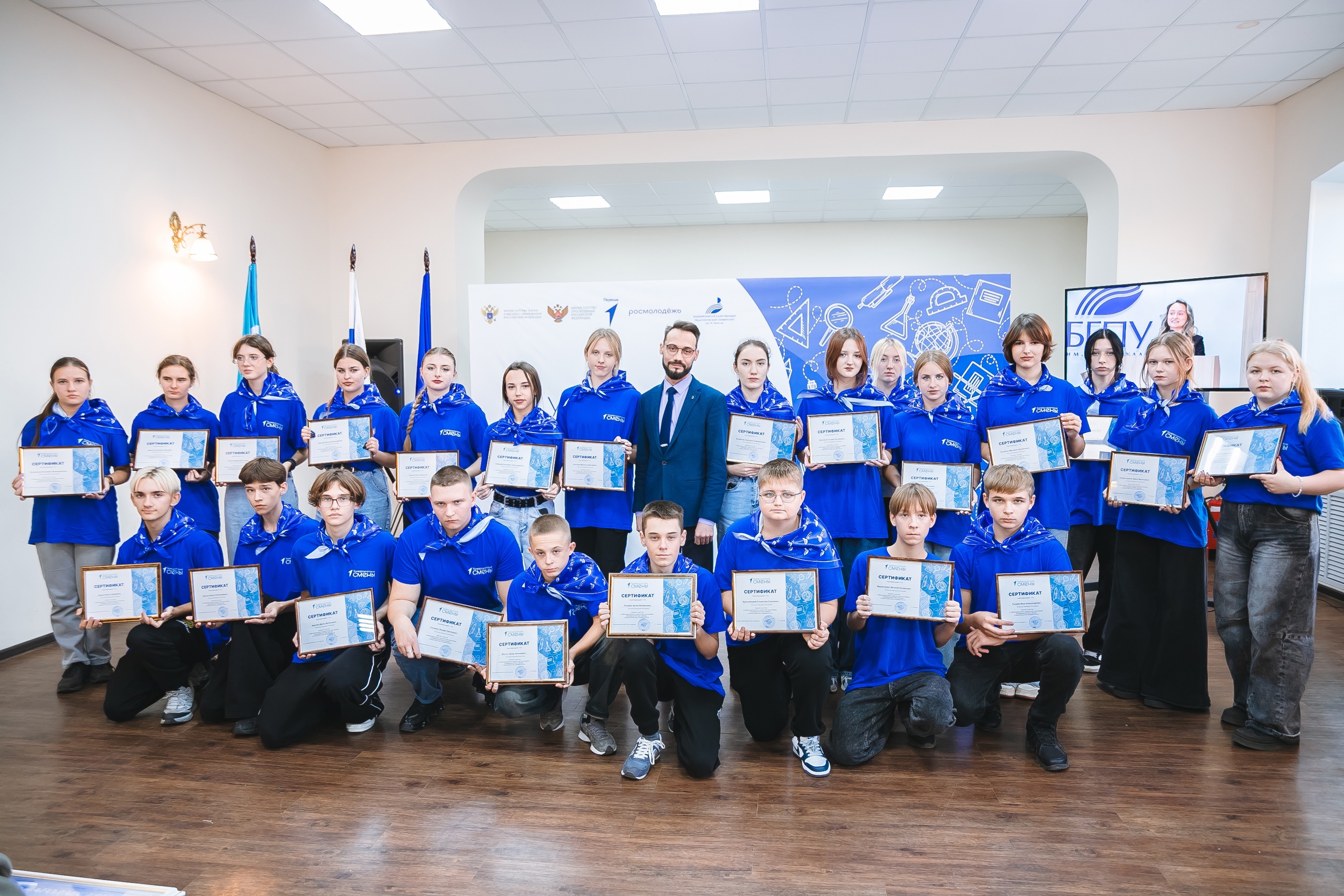 Закрывая смену, школьников поздравили первый проректор по стратегическому развитию вуза Алмаз Мустаев, директор Технопарка универсальных педагогических компетенций Сергей Переверзев и секретарь по организационной работе аппарата Башкирской республиканской организации Общероссийского Профсоюза образования Алия Мазитова.