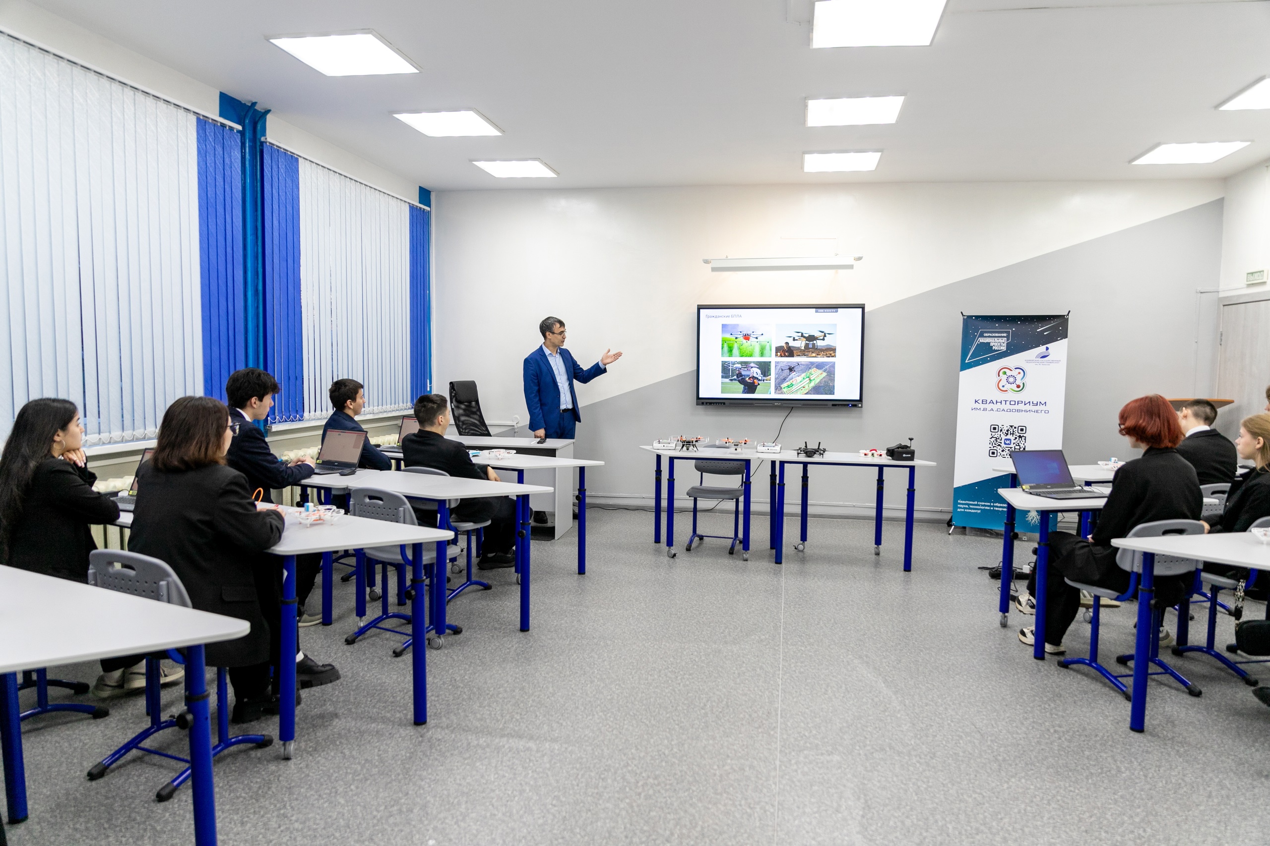 Ключевой точкой работы предуниверсария станет специальный кабинет, открытие которого состоялось в это день. Здесь директор Института физики, математики, цифровых и нанотехнологий,  руководитель Кванториума им. В.А. Садовничего Акмуллинского университета Азат Юсупов провел для школьников мастер-класс по робототехнике и управлению БПЛА.