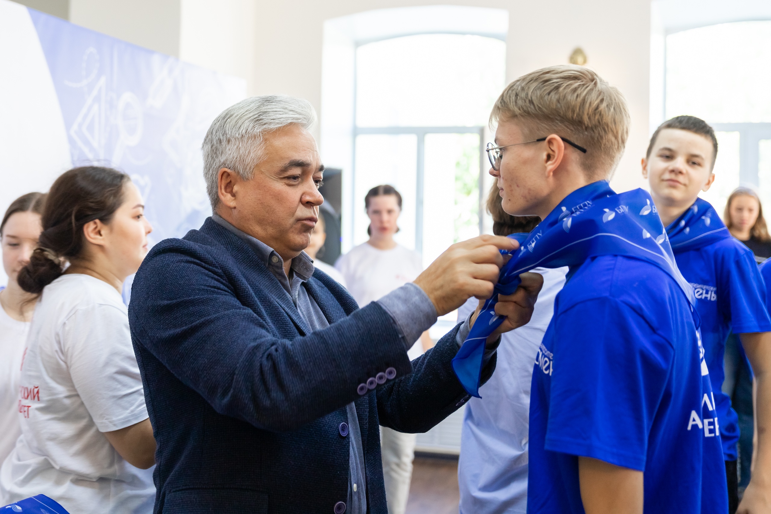 В начале мероприятия прозвучали гимны Российской Федерации и Республики Башкортостан. Одним из запоминающихся моментов стало знакомство гостей с традицией университета – повязыванием галстуков с символикой БГПУ имени Акмуллы.