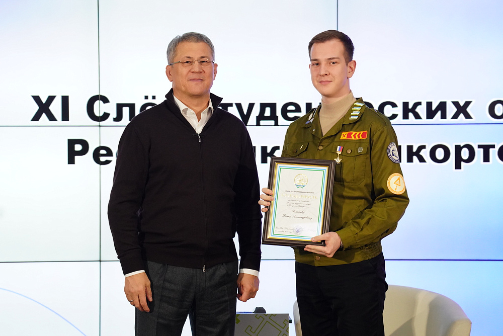 Сотрудник Технопарка универсальных педагогических компетенций,  студент магистратуры первого курса института педагогики кафедры музыкального и хореографического образования направления «Педагогическое образование», профиля «Дополнительное образование (музыка, хореография)»  Даян Айматов получил Благодарность Главы республики за за большой вклад в развитие движения студенческих отрядов Республики Башкортостан.