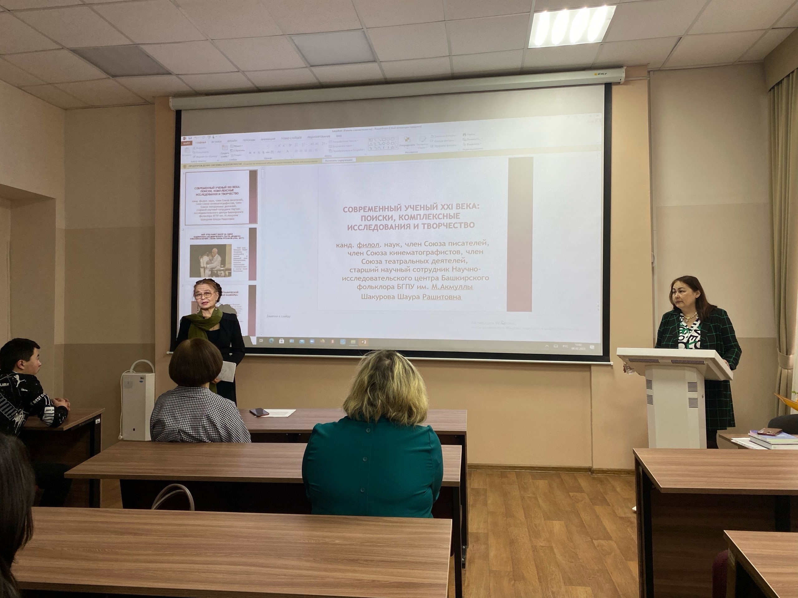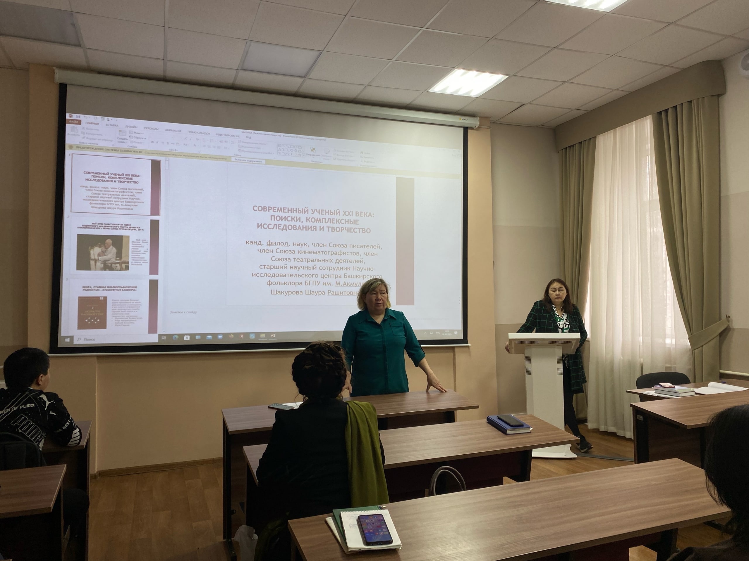 8 февраля в День науки на факультете башкирской филологии перед студентами выступила с лекцией «Ученый XXI века» кандидат филологических наук с.н.с. НИ Центра Башкирского фольклора БГПУ им. М. Акмуллы Шакурова Шаура Рашитовна .