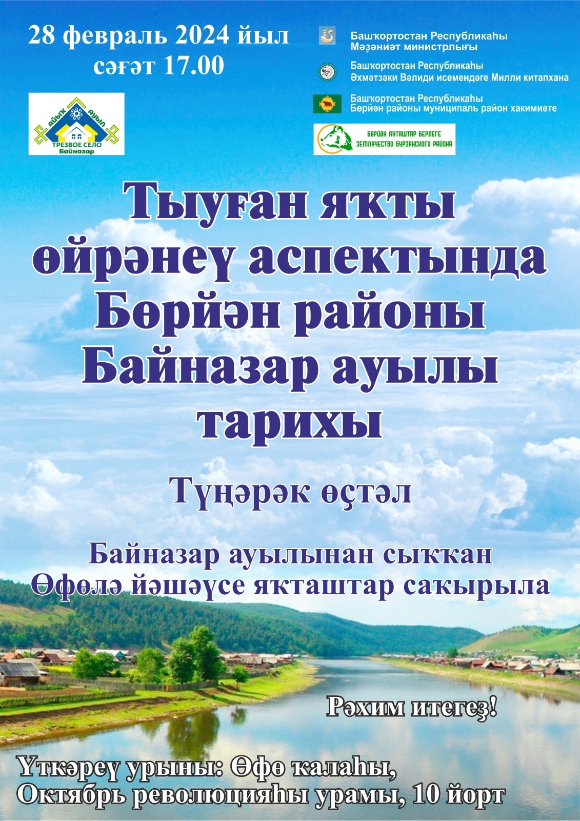 На заседании - круглом столе "История деревни Байназарово Бурзянского района в аспекте краеведения", проведенного Бурзянским землячеством 28 февраля,  главный научный сотрудник НИ Центра Башкирского фольклора Хуббитдинова Нэркэс Ахметовна озвучила доклад о топонимике деревни Байназарово в контексте эпоса "Бабаса и Кусяк" и преданиях края. Она, в частности, отметила необходимость проведения подобных исследовательских работ с учащимся в Муниципальных школах района с целью привить в них любовь к своей малой родине и краеведению.