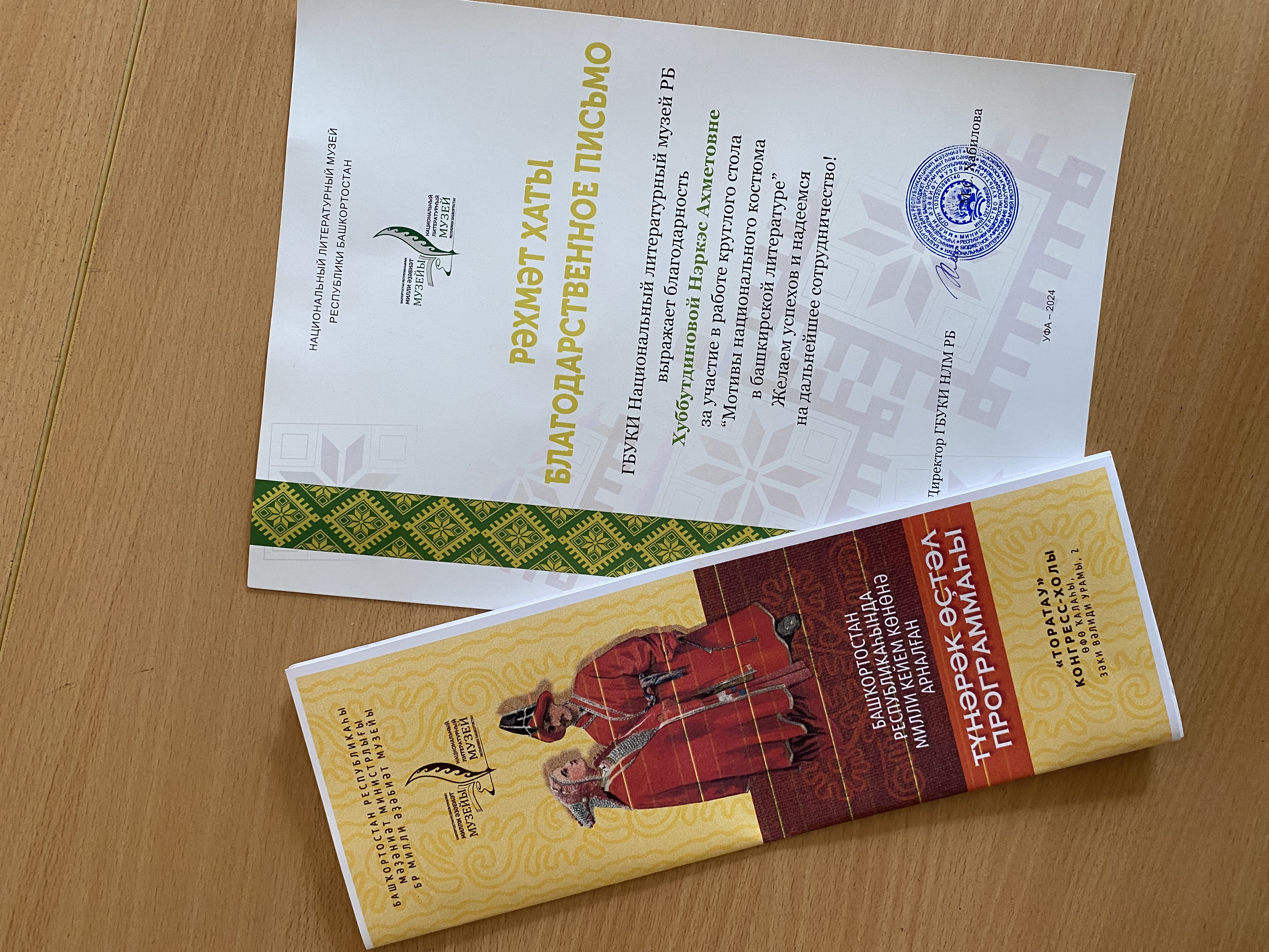16 мая 2024 г. сотрудник НИ Центра Башкирского фольклора Нэркэс Хуббитдинова приняла участие в работе круглого стола «Национальная одежда в художественной литературе и фольклоре» в Конгресс-холле «Тора-тау»