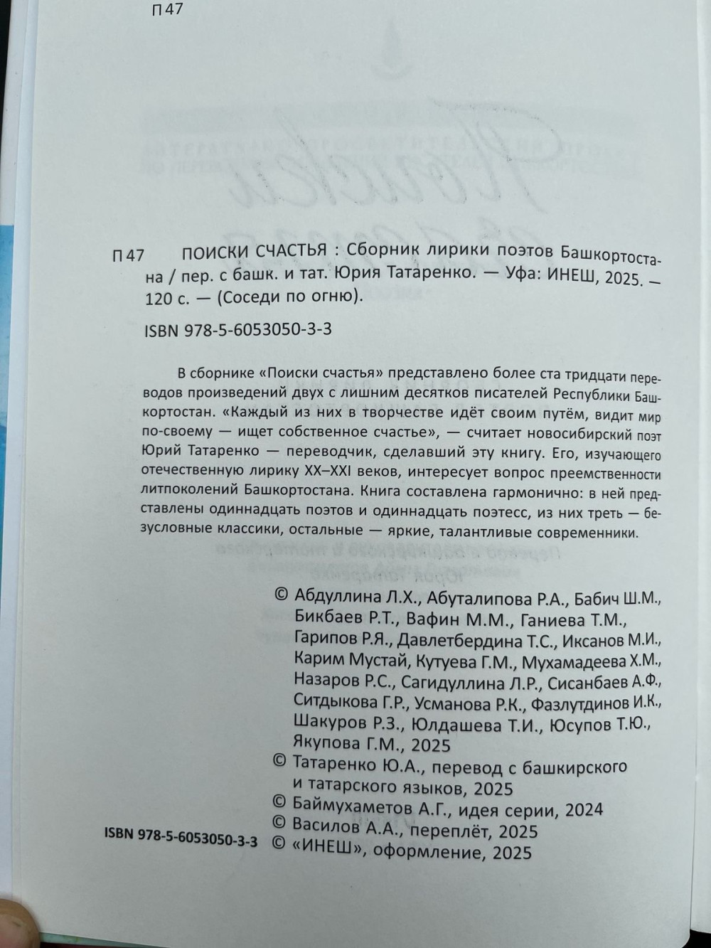 В книгу вошли стихи Народного поэта Республики Башкортостан Рашита Шакура в переводе Юрия Татаренко. Шаура Рашитовна поблагодарила Союз писателей РБ и фонд Грантов Главы Республики Башкортостан за память, а так же выразила надежду, что и впредь будут помнить имена классиков башкирской литературы и будут появляться новые имена.