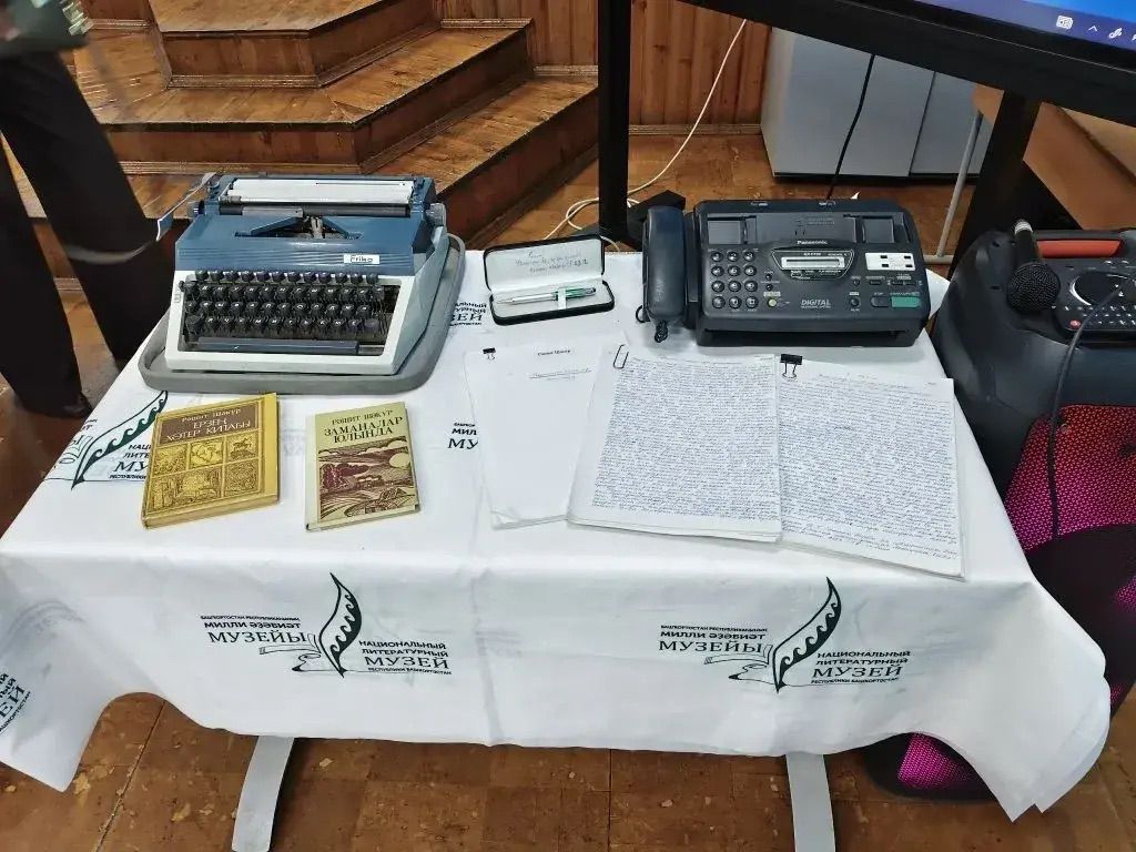 Национальный литературный музей РБ организовал выездную выставку, на которой были представлены уникальные экспонаты: подставка для книг, которую без единого гвоздя своими руками смастерил Акмулла; пишущая машинка Рашита Шакурова, на которой печатал ученый свои труды; рукописи статей и книг Рашита Шакурова и др.