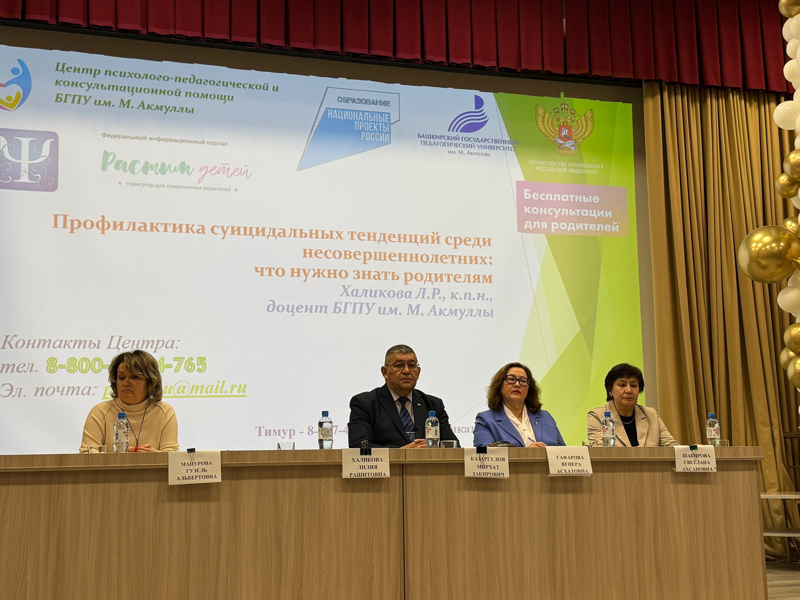14 ноября для родителей Ленинского района города Уфы Лилия Халикова провела просветительное мероприятие на тему: "Что нужно знать родителям о профилактике суицида среди детей и подростков?".