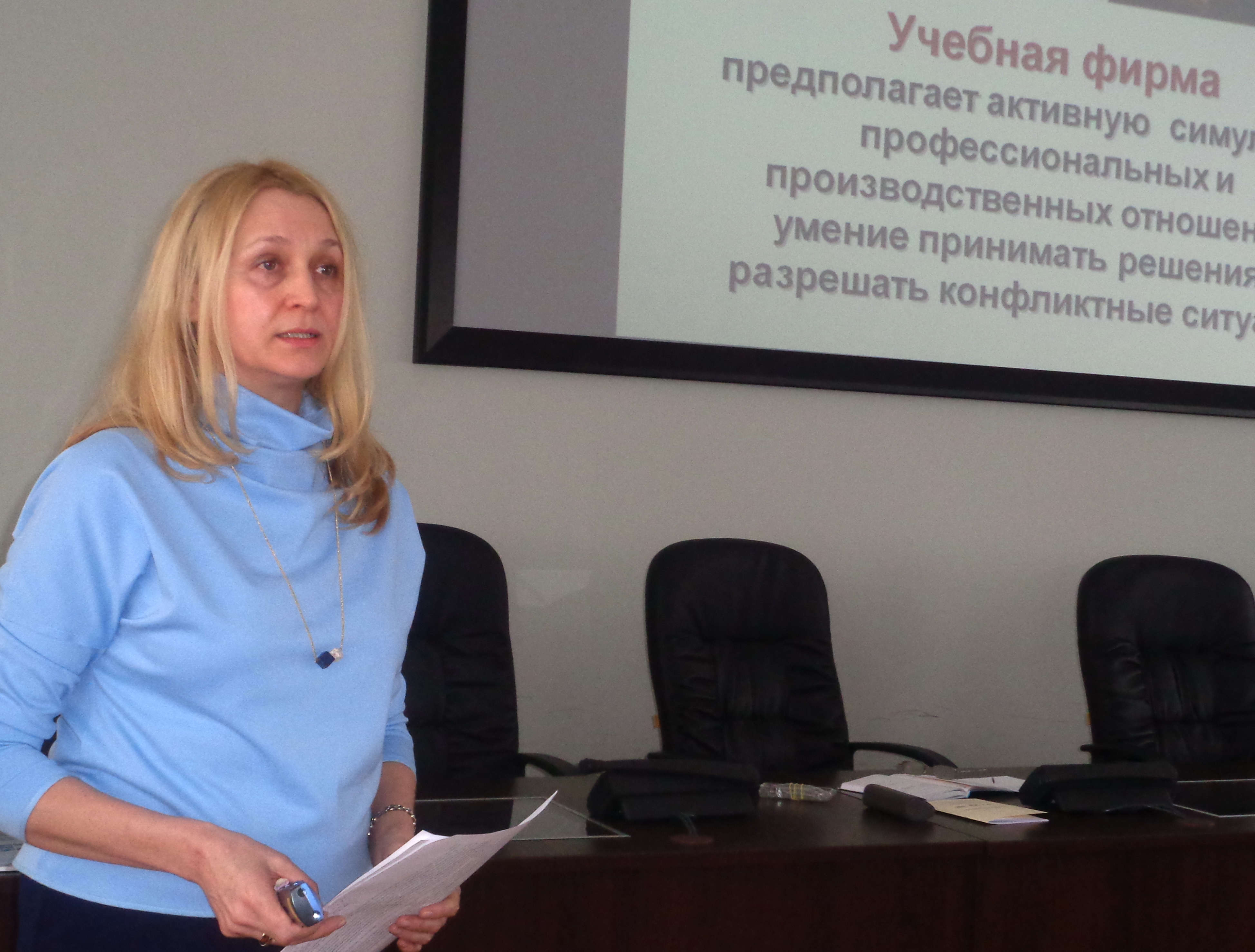 Доцент кафедры методики преподавания иностранных языков и второго иностранного языка Гареева Э.А. поделилась опытом работы в учебной тренировочной фирме как одной из форм организации процесса иноязычного образования в формате деловой игры на уроках иностранного языка.