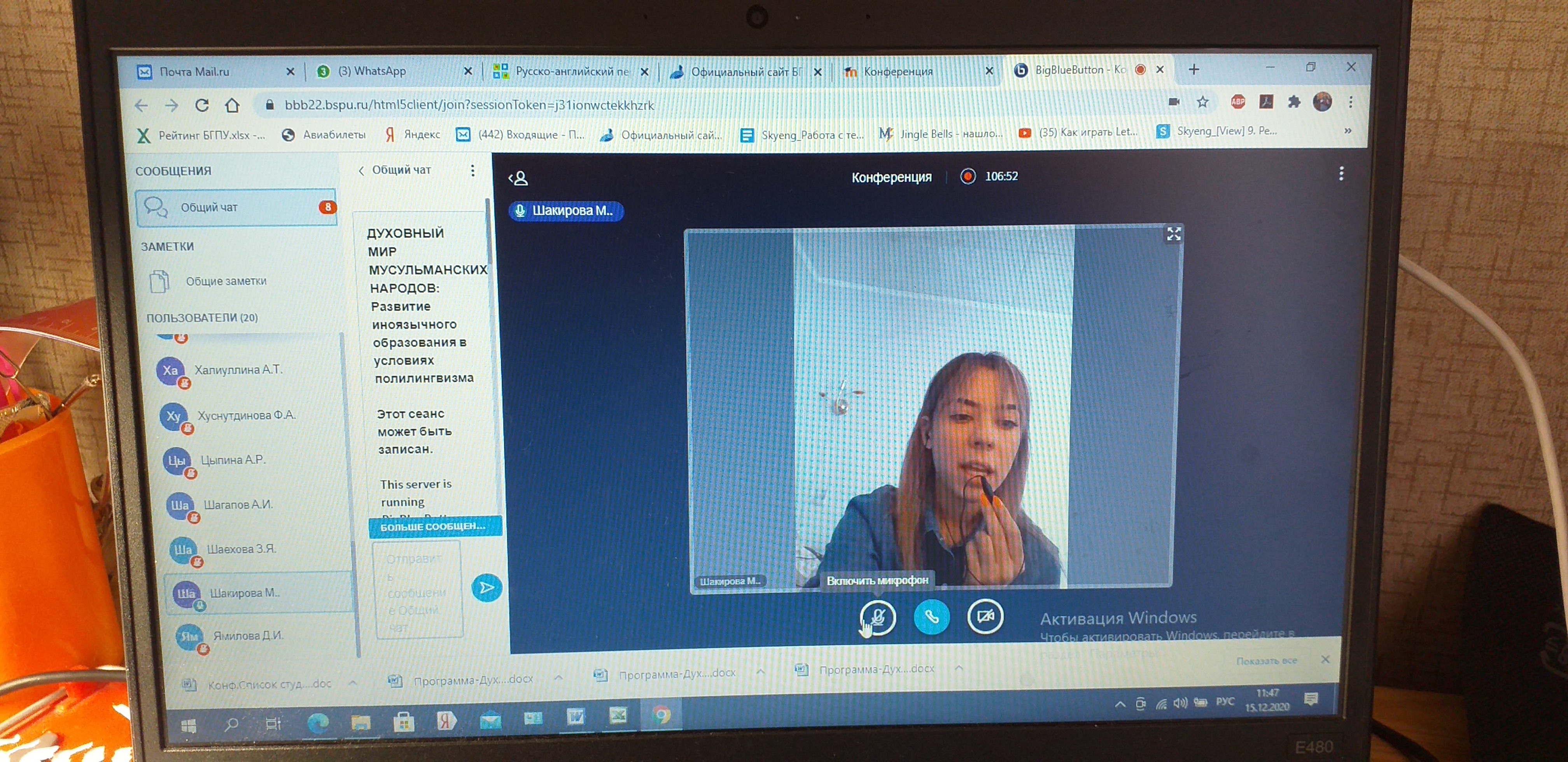 В рамках конференции проходило заседание секции «РАЗВИТИЕ ИНОЯЗЫЧНОГО ОБРАЗОВАНИЯ В УСЛОВИЯХ ПОЛИЛИНГВИЗМА», которая была организована и проведена кафедрой методики преподавания иностранных языков и второго иностранного языка при активном участии кафедры иностранных языков. Рабочим языком секции был выбран английский и русский языки.        В связи с известными обстоятельствами заседание проходило в он-лайн формате. Участниками секции были зарубежные и отечественные исследователи, преподаватели и студенты. Наиболее интересными, по общему мнению, были выступления наших гостей из США.      Адель Мансилла (Westfield State University’s Assistant Professor (USA) выступила с докладом («How “bad” translations made “good” literature: the ‘Dostoevsky on the pampas’ case»), в котором она в занимательной форме поведала о сложностях перевода произведений Ф.М. Достоевского и других русских классиков. В частности сообщалось о том, как плохие переводы иногда создавали хорошую литературу.       В своем выступлении Камила Кейгл (Dr. Camila Nailevna Cagle, Ranger College’s English Language Instructor (Ranger, Texas, USA) познакомила участников конференции с системой дуального образования в США («Dual courses as an effective means of high school»).      Сообщения наших американских соотечественниц были познавательными и были представлены на прекрасном американском варианте английского языка. Примечательно, что обе выступающие получили образование в Бирском пединституте Республики Башкортостан.      Определенный интерес со стороны слушателей был вызван выступлениями студентов, которые подготовлены следующие доклады.       Муандзиби Деди Рюдней (научный руководитель И.А. Вахитова) Общие семантические модели развития лексики в русском, французском, китайском языках и африканском языке лингала группы банту.       Абдрашитова Альбина (научный руководитель И.К. Гараева) Major setbacks to increasing student youth physical preparedness.       Ахметова Мария (научный руководитель В.Ф. Аитов) Обучение грамматике английского языка в дистанционном формате на среднем этапе.      Валиуллин Алмаз (научный руководитель Р.С. Рашитова) Some peculiarities of distance learning of English at Bashkir State Pedagogical University n.a.M. Akmulla.       Костригина Наталья, Aхметова Анастасия (научный руководитель Л.Ф. Валеева) National arts and crafts in the modern design.      Курбангалеева Карина, Лыткина Ангелина (научный руководитель А.Р.  Цыпина) IT management in distance learning.       Мустафина Арина (научный руководитель З.Р.Киреева) Аутентичный текст как средство развития социокультурной компетенции старшеклассников.       Ускова Карина (научный руководитель О.В. Гергель) Особенности вербализации концепта «терроризм»в англоязычных СМИ.       Халиуллина Алина (научный руководитель А.Р. Цыпина) Language acquisition from the point of view of temperament in off-line learning conditions.      Шакирова Малика, Бону Бахром (научный руководитель Ф.А. Хуснутдинова).Modern youth and religion.       Ямилова Диана (научный руководитель А.Г. Коптюх) The meaning of proper names in J.K. Rowling’s “HarryPotter’ novels.      Примечательно, что большая часть выступлений студентов неязыковых факультетов была представлена на понятном и доступном английском языке.      Выражаю благодарность техническим модераторам секции Ахметовой Дарье Олеговне, студентке ИФОМК и Шагапову Айрату Ильдаровичу, ст. преподавателю кафедры иностранных языков и Швайко Вячеславу Дмитриевичу за моральную поддержку студентов, принимавших участие в работе секции