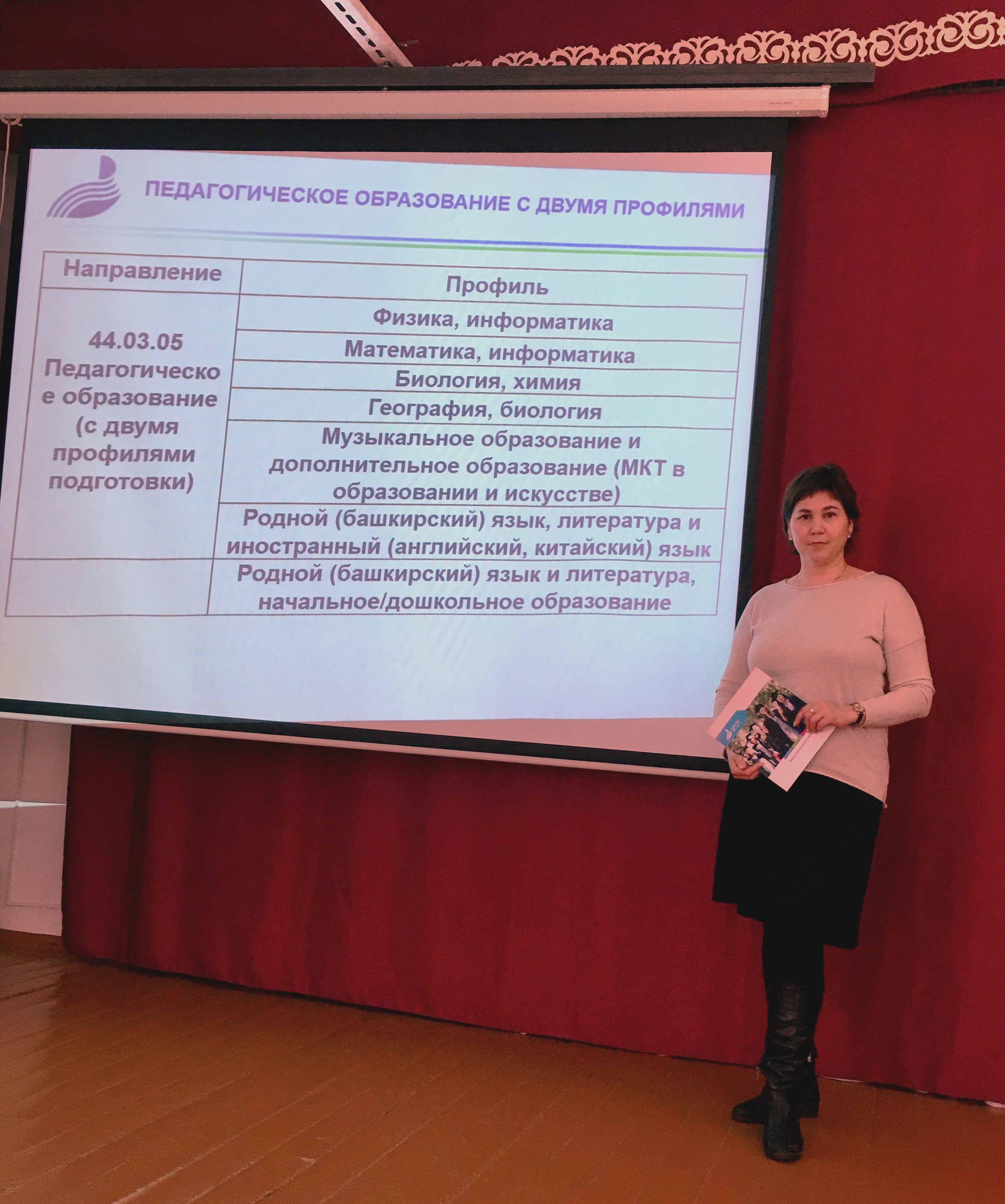 10 марта на базе СОШ №2 с. Кармаскалы была проведена профориентационная встреча с руководителями общеобразовательных учреждений района, в рамках которой доцент кафедры романо-германского языкознания и зарубежной литературы Д.Р. Фатхулова провела презентацию БГПУ им. М. Акмуллы и подробно рассказала о правилах приема абитуриентов на 2021 год, преимуществах БГПУ как опорного педвуза РФ и вуза-партнера в рамках сотрудничества университетов ШОС-БРИКС.