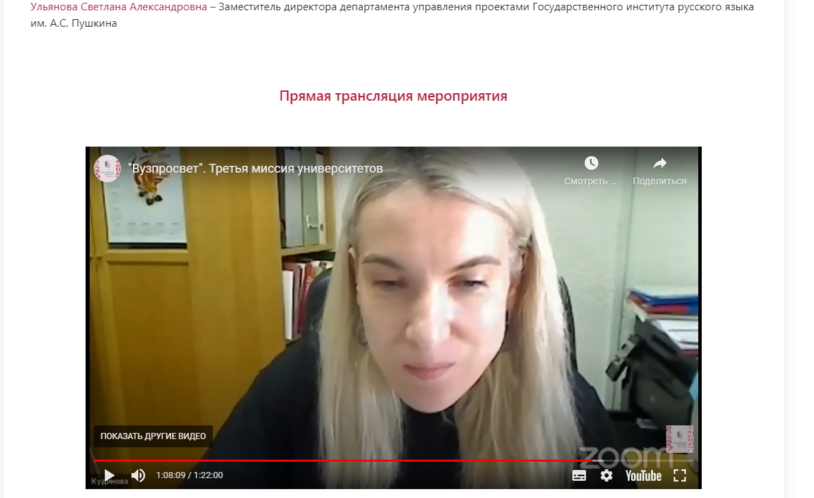 27 мая под руководством ректора ГИРЯ им. А.С. Пушкина Маргариты Русецкой состоялась Панельная дискуссия «Вузпросвет. Третья миссия университетов».