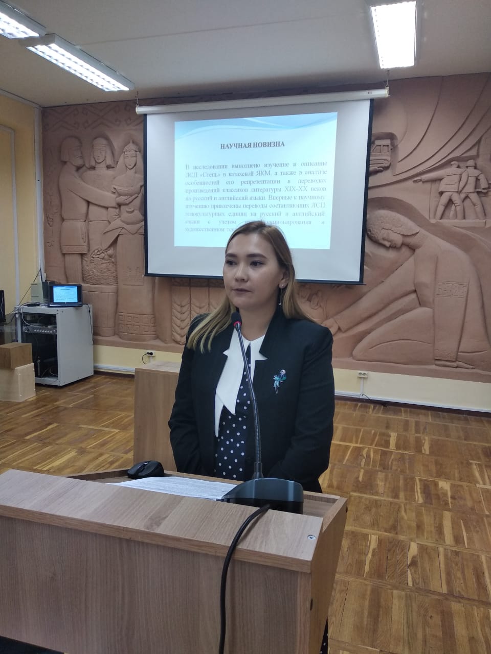 Ведущая организация - Набержночелнинский государственный педагогический университет. С.С.Мухтарова сегодня работает старшим преподавателем кафедры иностранных языков и литературы Баишев Университет, г.Актюбинск, Казахстан. Сидешова Зарина Галиевна защитила диссертацию на тему "Репрезентация лексико-семантического поля “Степь» в казахских, русских и английских языковых картинах мира (на материале перевода художественной литературы)". Официальные оппоненты: Салихова Эльвина Ахнафовна - доктор филологических наук, профессор, профессор кафедры языковой коммуникации и психолингвистики ФГБОУ ВО «Уфимский государственный авиационный технический университет» и Ашрапова Алсу Халиловна, кандидат филологических наук, доцент, заведующая кафедрой языковой и межкультурной коммуникации» ФГАОУ ВО «Казанский (Приволжский) федеральный университет» Ведущая организация - Чувашский государственный педагогический университет им. И.Н.Яковлева. Сидешова З.Г. является преподавателем кафедры английского и немецкого языков Актюбинского регионального университета им. К. Жубанова Научным руководителем обоих аспирантов является доктор филологических наук, профессор, зав.кафедрой татарского языка и литературы ИФОМК И.С.Насипов.  Диссертации выполнены на кафедре русского языка ИФОМК. Члены Диссертационного совета единогласно проголосовали за присуждение искомых научных степеней единогласно. Были отмечены актуальность, научная новизна, научно-теоретическая и практическая значимость результатов диссертаций. Выражаем огромную благодарность руководству ЧГУ им.И.Н.Яковлева за предоставленную возможность защититься нашим выпускникам, а всем официальным оппонентам и авторам отзывов, руководителям вузов ведущих организаций за положительные оценки их диссертаций. Желаем научному руководителю, а также защитившим диссертации нашим выпускникам здоровья, новых научных и педагогических успехов. С их стороны это был своеобразным подарком кафедре татарского языка и литературы на 30-летие со дня открытия! Доцент кафедры ТЯЛ  Р.Р.Гареева