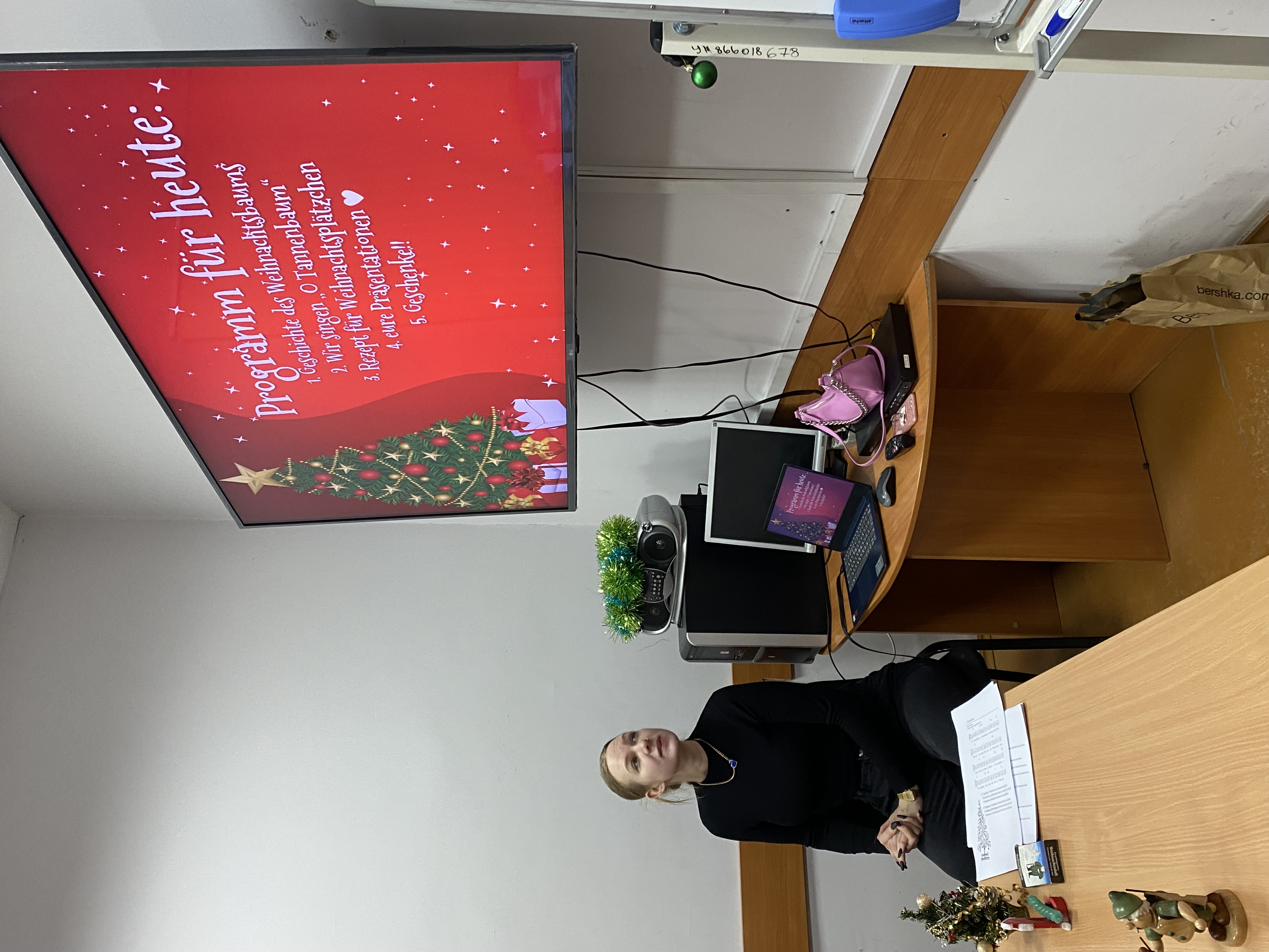 Как известно, 24 декабря в Европе отмечается Рождество. Этот праздник богат своими традициями. Накануне этого дня студенты немецкого профиля ИФОМК приняли участие в проекте “Weinachten in Deutschland“, в рамках которого они узнали об основных атрибутах и обычаях предрождественского времени (Advent), об истории и культуре праздновании Рождества. Праздничную атмосферу создали традиционные песни, которые можно услышать в это время на всех рождественских ярмарках Германии, Австрии и Швейцарии. Данный проект ежегодно организуется преподавателями кафедры РГЯиЗЛ Бурковой Т.А. и Галиевой Г.Р. Он способствует формированию общепрофессиональных и специальных (социокультурной и лингвистической) компетенций обучающихся. Будущие учителя немецкого языка учатся организовывать мероприятия, знакомятся со способами повышения мотивации к изучению иностранного языка, узнают много нового о культуре немецкоязычных стран.