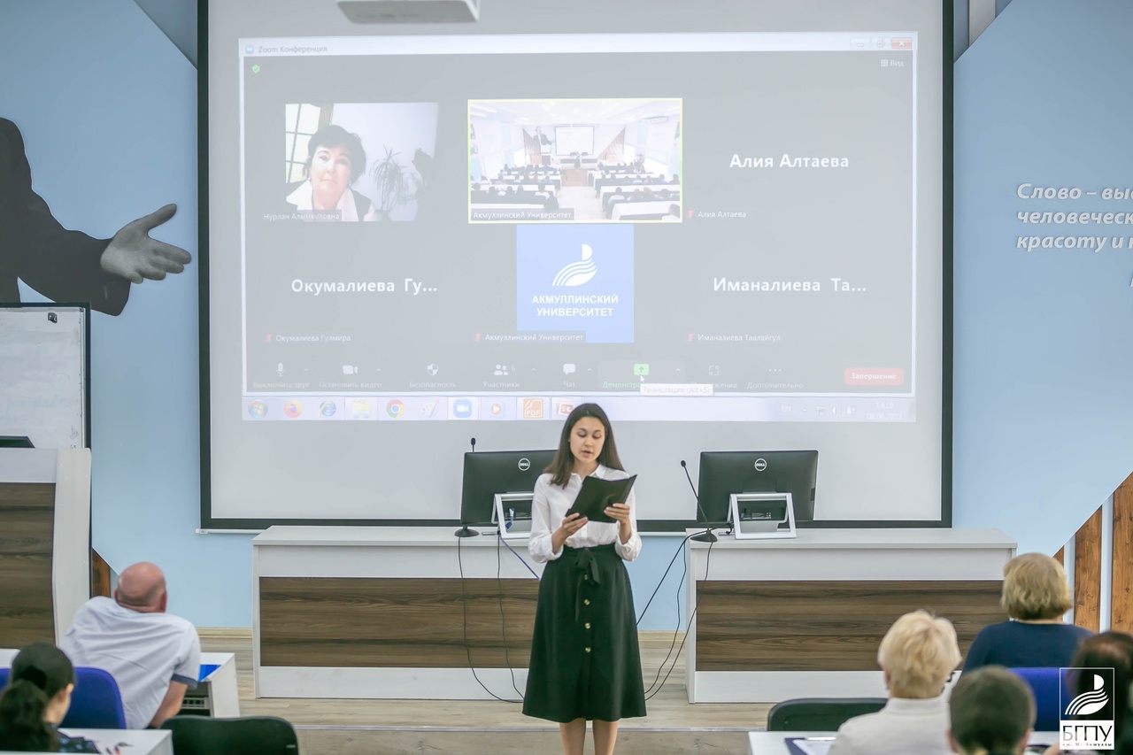 Общественно значимое образовательное и культурно-просветительское мероприятие «Я люблю русский язык» прошло в аудитории им. Мустая Карима третьего учебного корпуса. Студенты-волонтеры родных языков БГПУ им. М. Акмуллы Максим Иванов и Ангелина Кузьмина рассказали о своей поездке в г. Бишкек (Республика Кыргызстан), где они работали со школьниками Кыргызстана и пакистанскими студентами, обучающимися в Кыргызском национальном университете им. Ж. Баласагына. Они поделились впечатлениями, рассказали о местном колорите, кыргызском гостеприимстве, национальной кухне. Пятикурсники профиля «Русский язык как иностранный» поблагодарили Акмуллинский университет за предоставленную возможность поработать преподавателями русского языка как иностранного за границей.