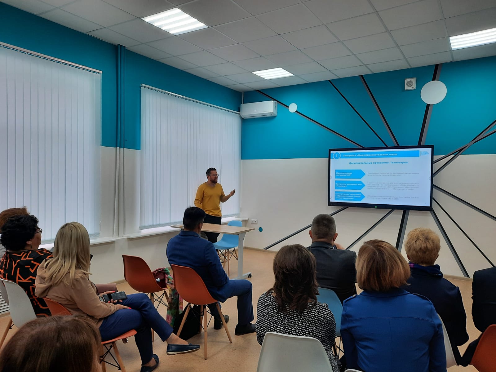 Экскурсия началась с технопарка универсальных педагогических компетенций «Учитель будущего поколения России», где делегацию встретил директор технопарка Айдар Сайгафаров. Он рассказал об образовательных программах для школьников, студентов и учителей республики на базе мультифункциональных мастерских.