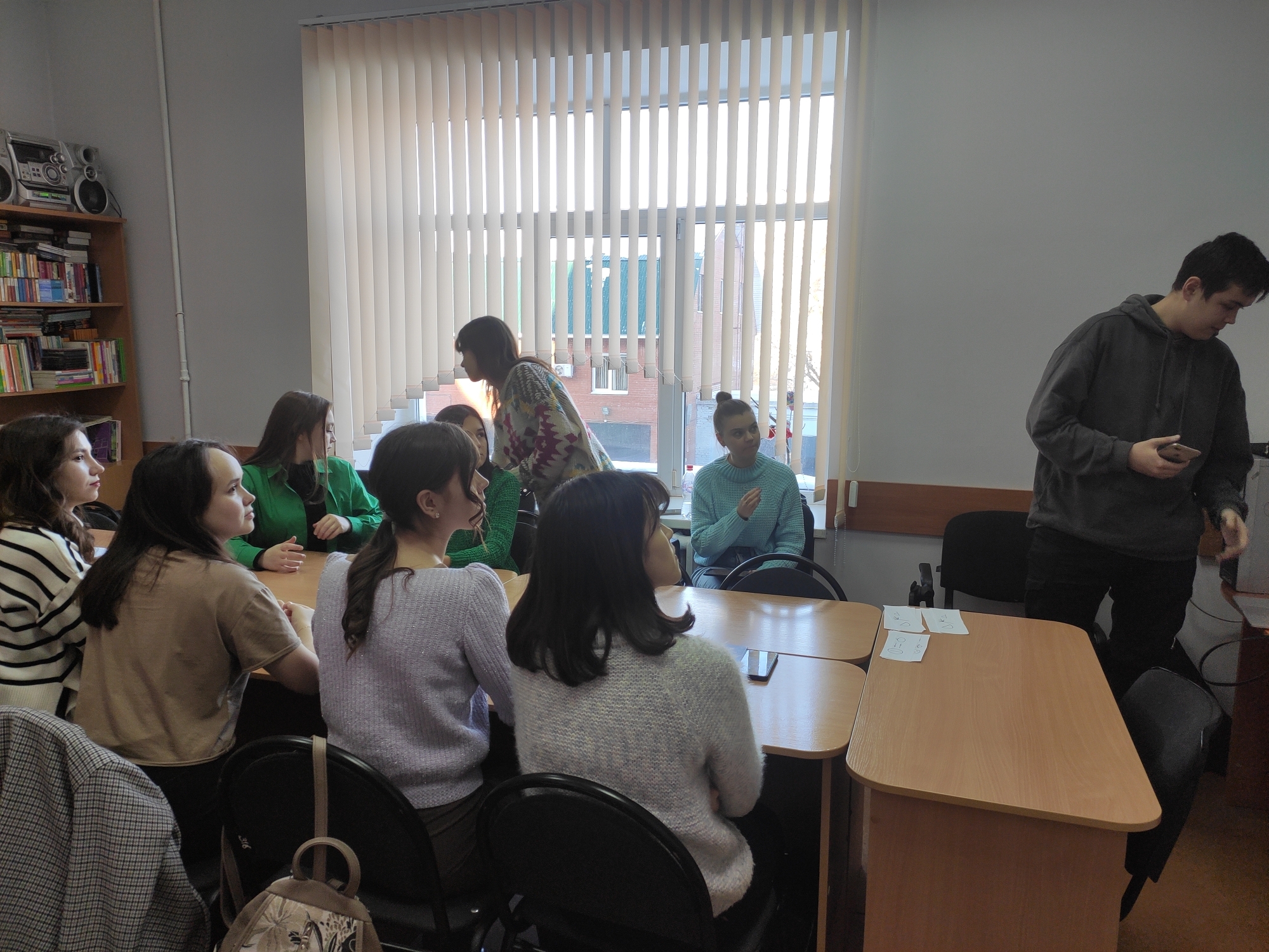 30 января 2023 года прошел кураторский час "Разговоры о важном" со студентами 2 курса направления подготовки Педагогическое образование, профиль "Английский язык и немецкий язык", "Английский язык и французский язык". Темой кураторского часа стал рассказ о “Движениии первых”, российском объединении детей и молодежи. Кураторский час для студентов 2 курса был подготовлен студентами 3 курса направления “Педагогическое образование”.  Мероприятие проходило в духе эвристической беседы, в ходе которой студенты узнали об истории создания Российского движения детей и молодежи “Движение первых”, о ценностных ориентирах организации, ее достижениях и планах. Ведущие кураторского часа задавали вопросы аудитории, предлагали выполнить небольшие задания.