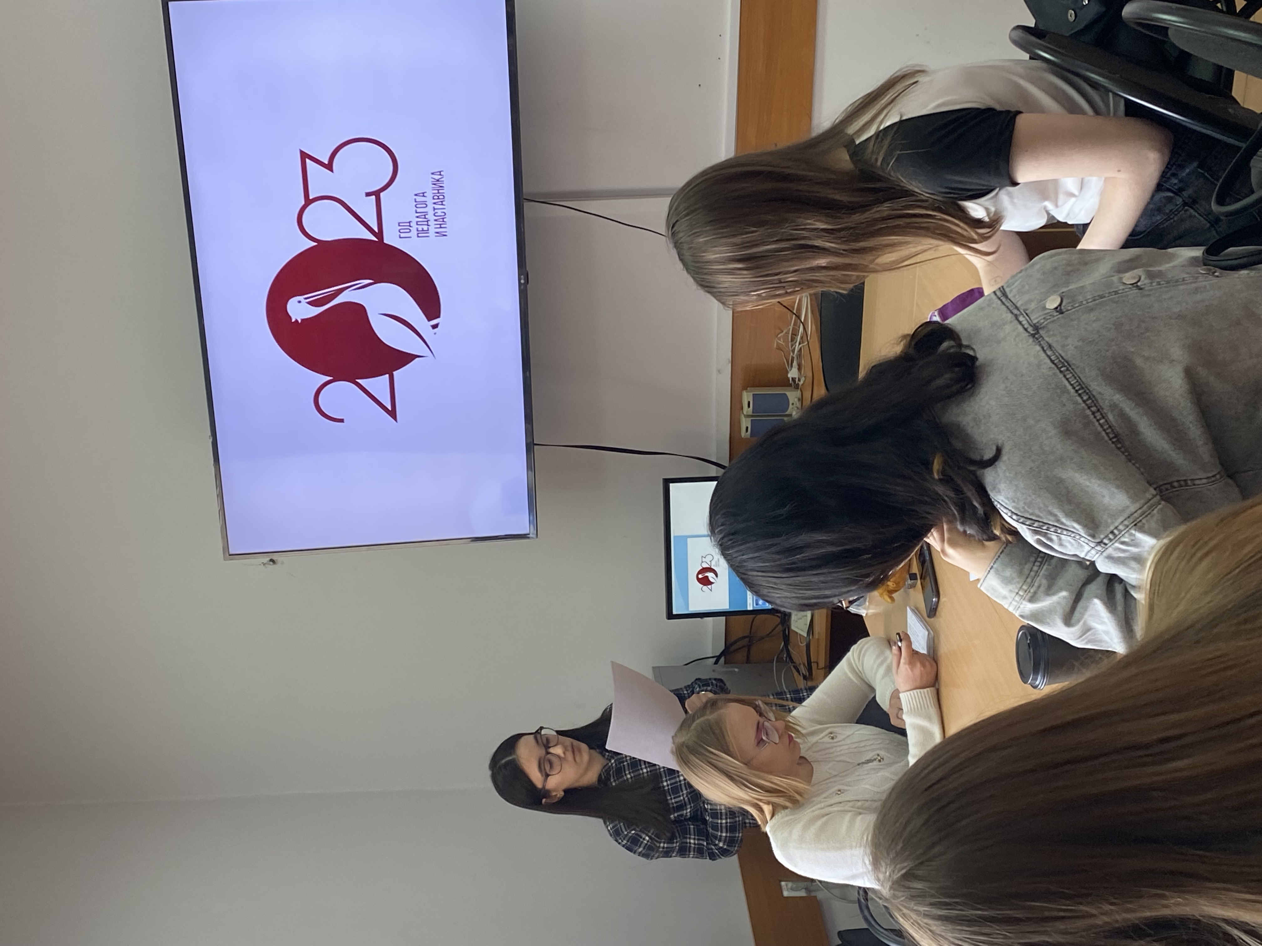 6 марта 2023 года на 3 курсе направления подготовки «Педагогическое образование», профиль «Иностранный (английский) и немецкий язык» в рамках проекта «Разговоры о важном» прошел кураторский час на тему «Год педагога и наставника». Цель занятия: формирование представления у обучающихся о значимой роли педагога в становлении личности каждого человека; формирование у обучающихся чувства благодарности и уважения к родителям, педагогам, наставникам; понимания, что служение Отечеству проявляется, в числе прочего, и в форме наставничества; представления о качествах, которые необходимы тому, кого можно назвать наставником. Докладчиком выступила Абнасырова Алсу. На занятии будущие педагоги просмотрели несколько видеороликов и ответили на «несколько почему»: Почему педагогу недостаточно знать только свой предмет? Почему важно, чтобы педагог был и немного психологом, актером, исследователем, экспериментатором? Почему работа педагога не заканчивается после звонка с последнего урока? Дискуссия состоялась при ответе на вопрос: Быть педагогом – это профессия или призвание?