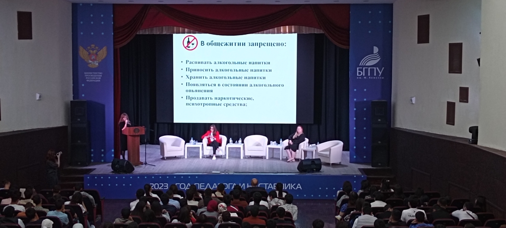 Сотрудники управления по вопросам миграции МВД по РБ и представители подразделений университета напомнили студентам о важных аспектах миграционного законодательства России и ответственности за его нарушение, об особенностях оформления разрешения на временное проживание, получения медицинской страховки. Студентам также рассказали о возможностях студенческого самоуправления и мерах поддержки, оказываемой обучающимся.