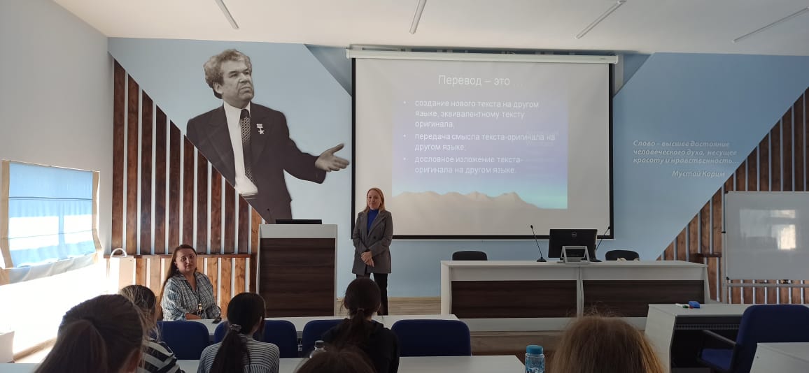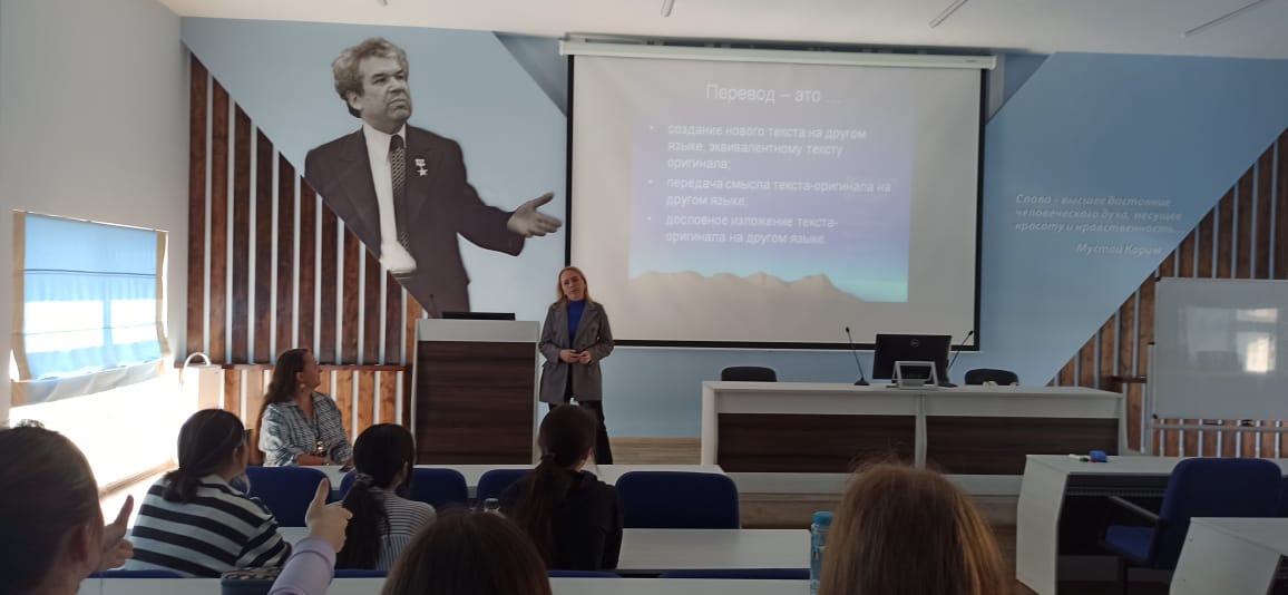 05 октября 2023 года преподаватели кафедры межкультурной коммуникации и перевода - к.ф.н., доцент Е.В. Иванова и ассистент В.И. Лившиц - провели для студентов первого курса мероприятие, посвящённое международному дню перевода.