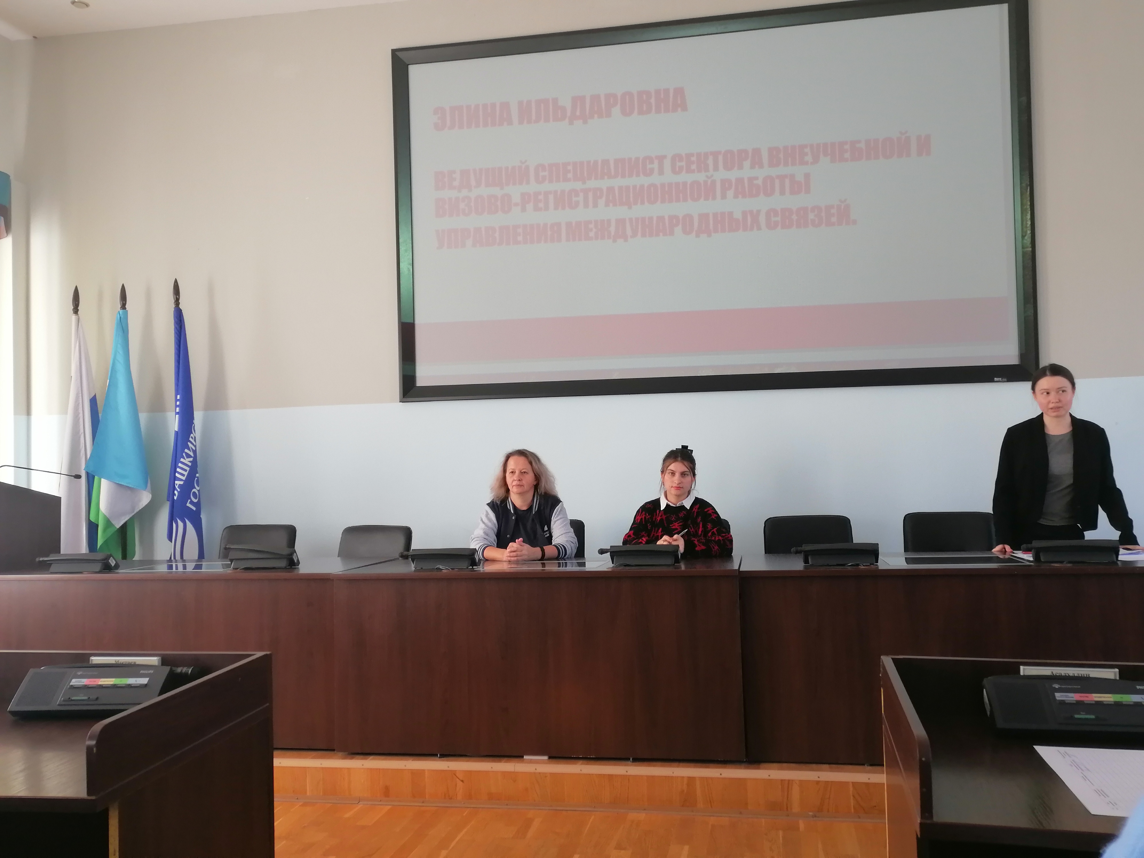 Перед студентами также выступила ведущий специалист сектора внеучебной и визово-регистрационной работы Управления международных связей Э.И. Шафеева. Эльмира Ильдаровна напомнила студентам о необходимости прохождения медосмотра и дактилоскопии, соблюдении правилах внутреннего распорядка в университете и общежитии.