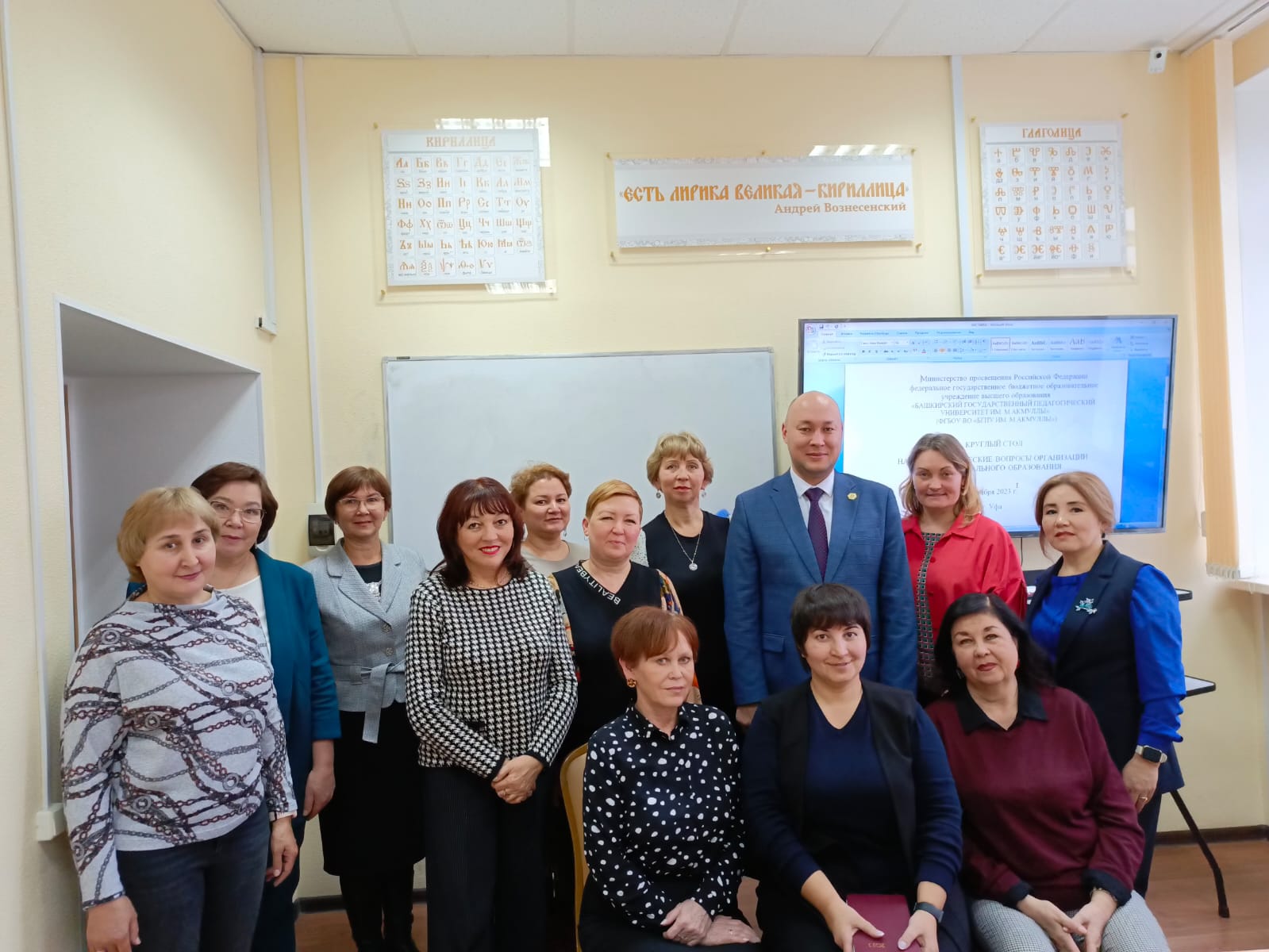 08 ноября 2023 года  состоялась встреча преподавателей  ИФОМК (директор института филологического образования и межкультурных коммуникаций Х.Х.Галимова, заведующий  кафедрой английского языка Р.М. Иксанова, заведующий  кафедрой романо-германской филологии и методики обучения иностранным языкам Т.А.Буркова, доцент кафедры романо-германской филологии и методики обучения иностранным языкам З.Р.Киреева), ФБФ (декан факультета башкирской филологии Л.М.Хусаинова, доцент кафедры башкирского языка и литературы  З.А.Хабибуллина)  и ИП (и.о. заведующего кафедрой дошкольной педагогики и психологии  Г.Ф.Шабаева) Акмуллинского университета с представителями ДОУ и СОШ г. Уфы и г.Стерлитамака, реализующими полилингвальное образование в образовательных организациях  РБ. В работе Круглого стола приняли участие директор ГБОУ «Республиканская полилингвальная многопрофильная гимназия № 2 «СМАРТ» г. Уфа  Н.Р. Аминев,  заведующий МАДОУ д/с  264 г. Уфа З.М.Чинаева, старший воспитатель МАДОУ д/с 264 г.Уфа И.А.Мишина, заместитель директора по учебно-воспитательной работе МАОУ «Лицей № 68» г. Уфа М.А. Шестакова,  заместитель директора МАОУ "ПМШ 23" г. Стерлитамак Г.Р.Гималова, заместитель директора по воспитательной работе, учитель башкирского языка ГБОУ "РПМГ № 1" г. Уфа, А.Д.Салаватова.