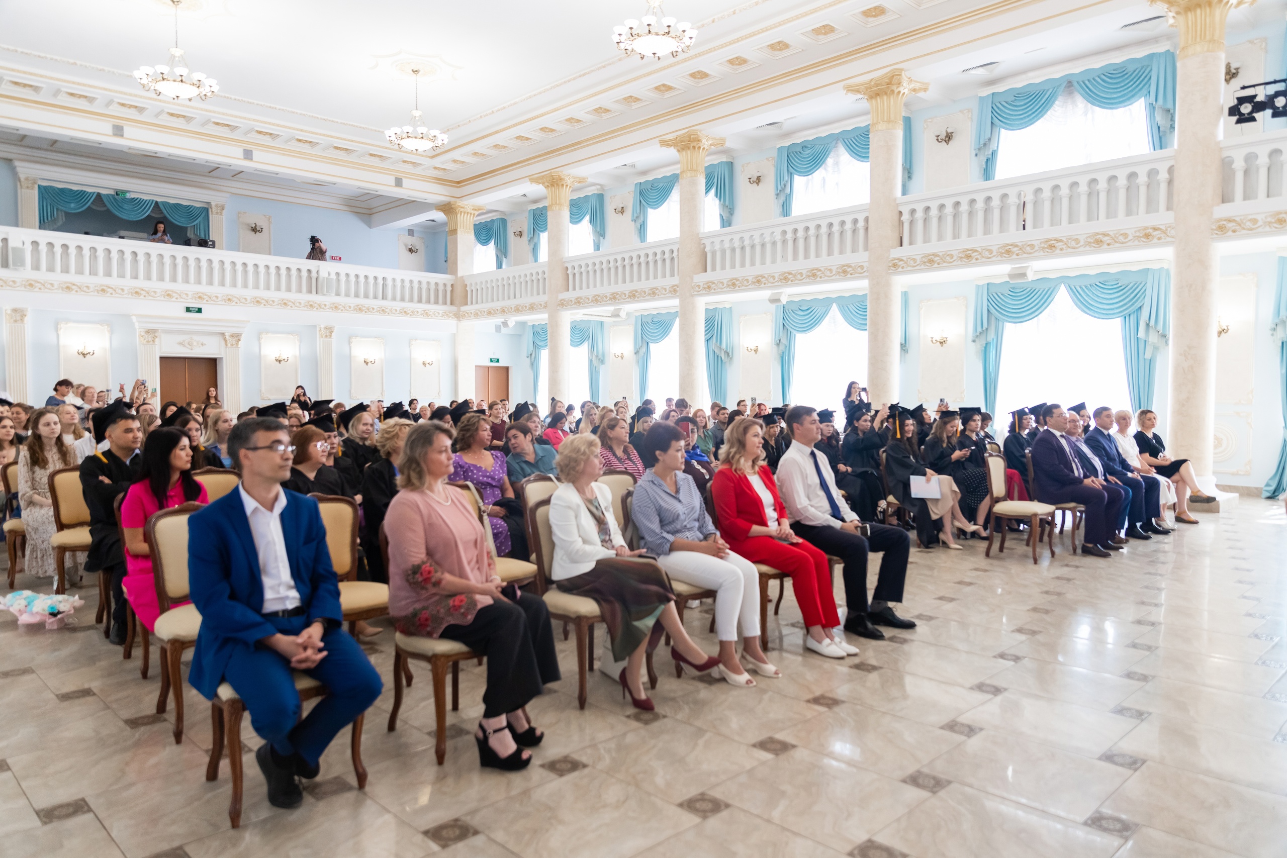 Поздравления в адрес новоиспеченных магистров прозвучали от руководителей образовательных программ, исполняющей обязанности заведующего кафедрой межкультурной коммуникации и перевода Юлии Юсуповой, заместителя директора по воспитательной работе и молодежной политике Татьяны Акбердиной.