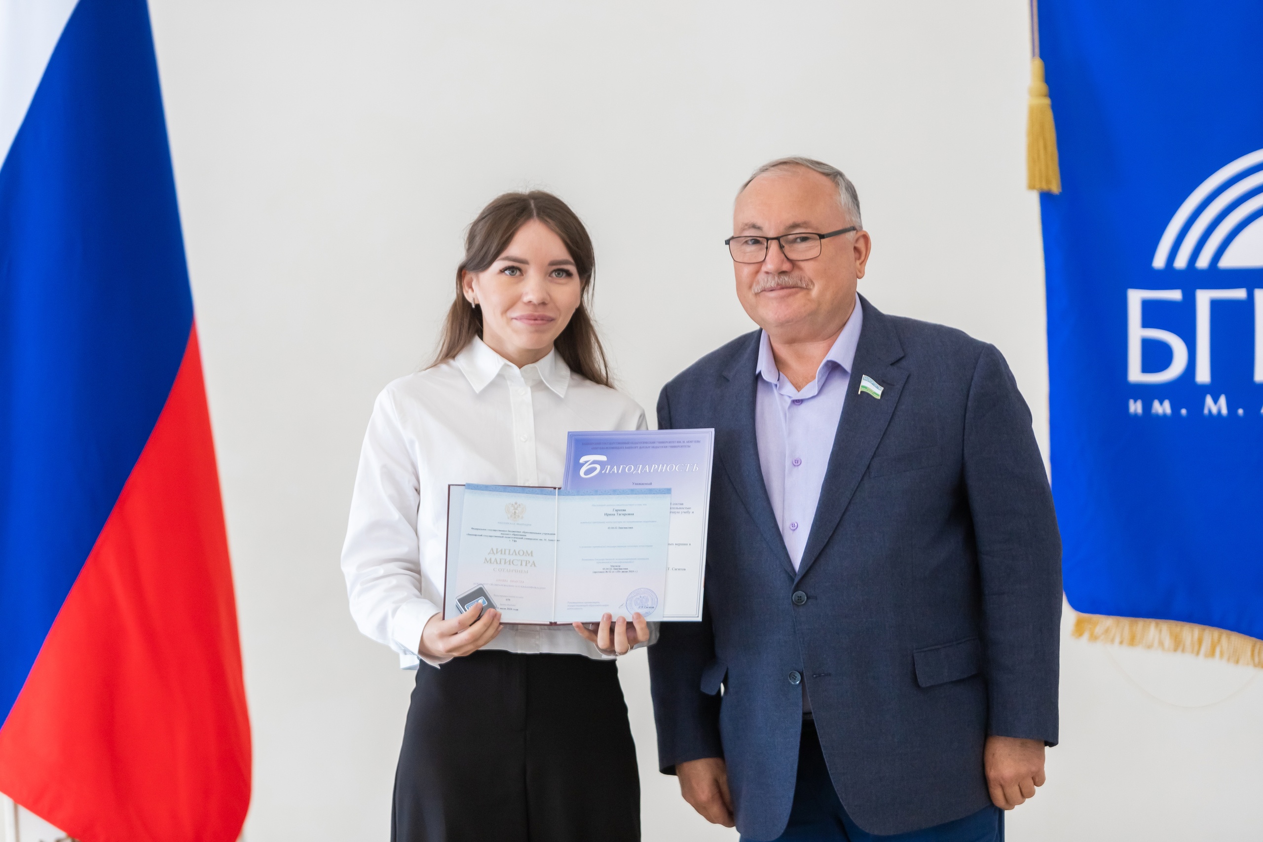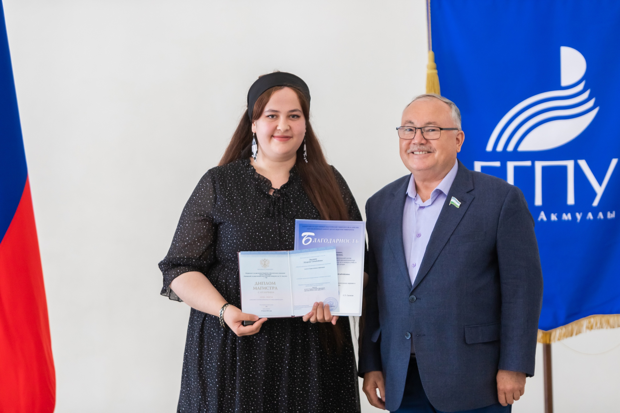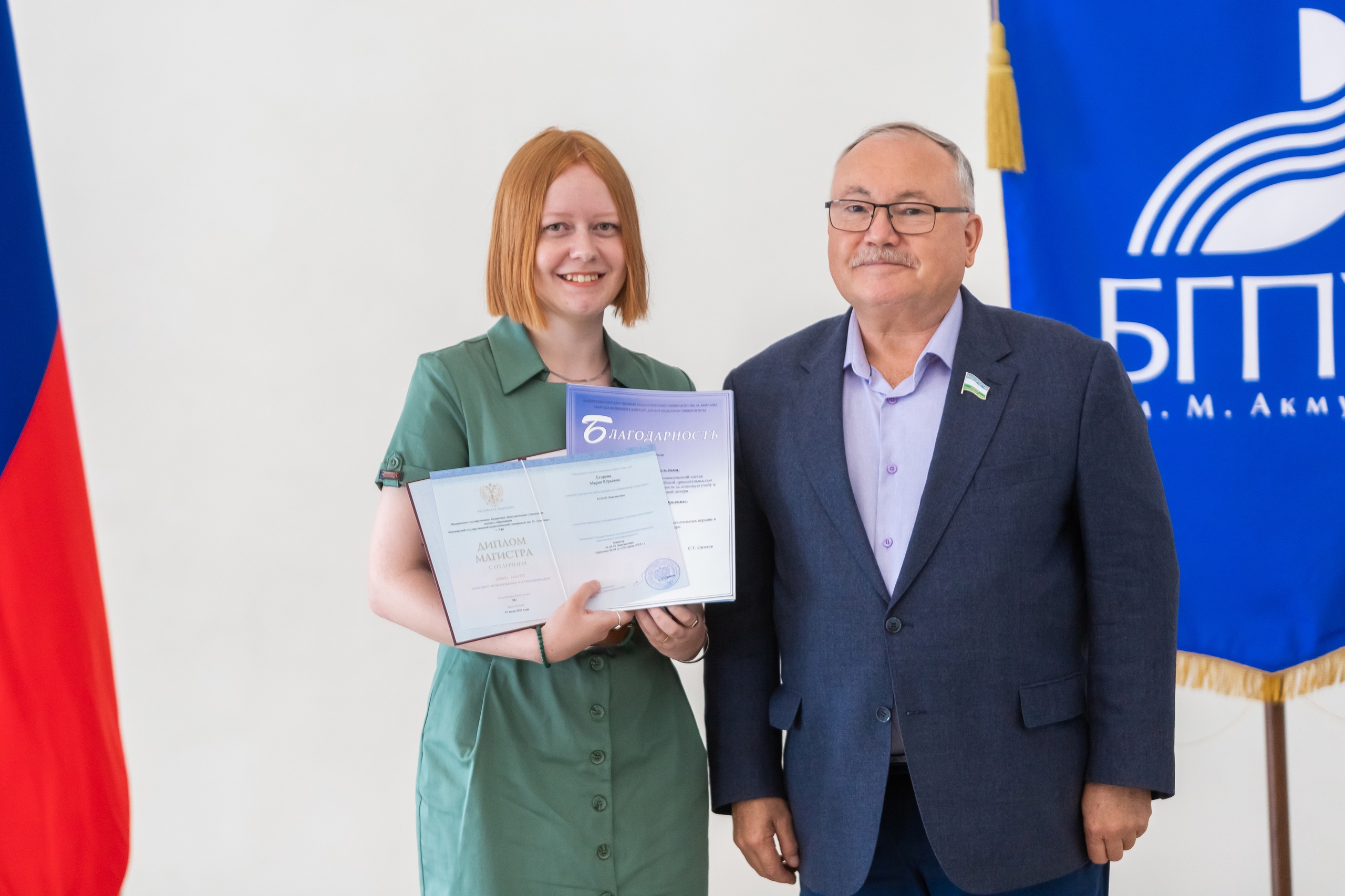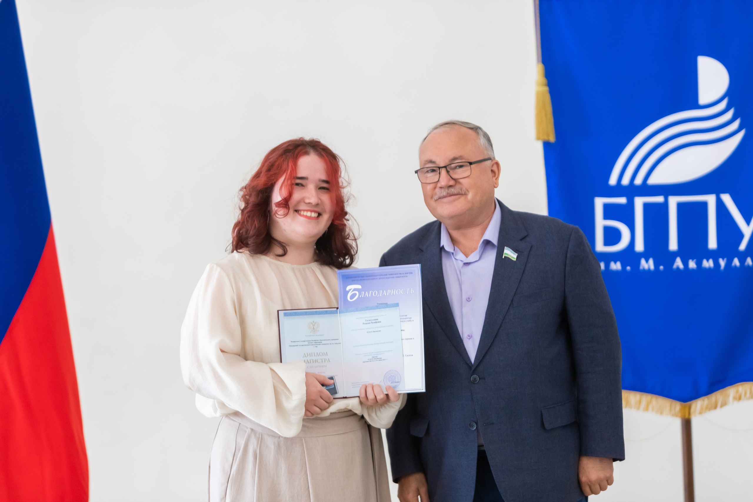 Уважаемые магистры, от всего сердца поздравляем вас с окончанием обучения в Башкирском государственном педагогическом университете им. М. Акмуллы! Желания и стремления вашего поколения определяют будущее страны, облик современного общества, в котором нам предстоит жить. Не бойтесь трудностей, уверенно преодолевайте их и покоряйте новые высоты. Пусть ваши самые смелые планы осуществятся в реальности. Счастья вам, здоровья, благополучия и удачи!